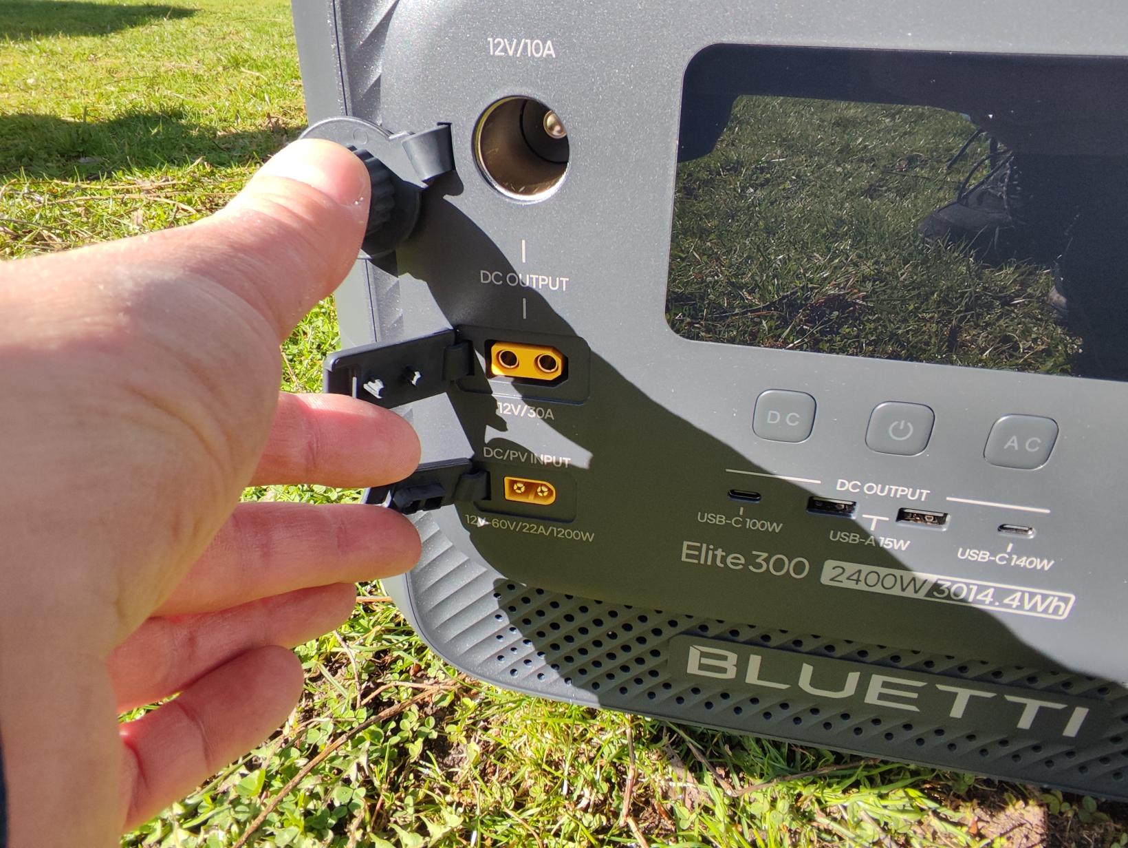 Die zwei Schuko-Steckdosen können eine Leistung von 2.400W ausgeben. Möchtet ihr noch leistungshungrige Geräte betreiben, könnt ihr in der App den Power-Lifting-Modus aktivieren. Bei diesem Modus liefert die Powerstation ihren höchstmöglichen Strom und reduziert dabei die Netzspannung. Somit lassen sich einfache elektronische Geräte wie Heizlüfter, Föhn oder Wasserkocher mit bis zu 4.800W versorgen, ohne dass die Powerstation abschaltet. Zusätzlich bietet die Bluetti Elite 300 einen XT90-Gleichspannungsausgang. Mit diesem lassen sich 12V-Geräte im Wohnmobil oder Camper wie Kühlschränke, Dieselheizungen oder die Beleuchtung unabhängig vom Bordnetz versorgen.