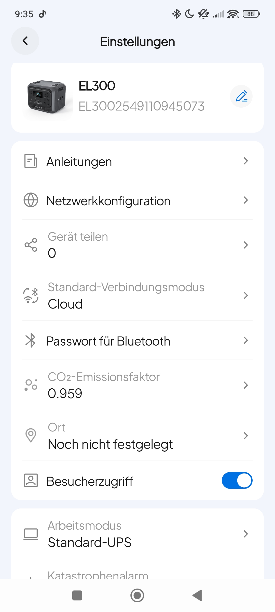 Die Konfiguration der UPS (unterbrechungsfreie Stromversorgung für angeschlossene Geräte) bietet verschiedene Betriebsmodi. Ihr könnt festlegen, dass sich die Powerstation nur in einem bestimmten Zeitraum im UPS/USV-Modus befindet und in welchem Ladebereich sie sich bewegen soll. Legt ihr beispielsweise einen SoC von 20% fest, wird die Powerstation nur bis zu diesem Bereich aus dem Netz geladen. Die Solarladung bleibt allerdings weiterhin aktiv bis zum Erreichen der oberen eingestellten Grenze. Somit kann die Bluetti Elite 300 im USV-Dauerbetrieb eure Geräte mit Solarenergie versorgen und wird im Notfall bei Erreichen der unteren Schwelle aus dem Netz geladen. Zusammengefasst bietet die Bluetti-App in Verbindung mit der Bluetti Elite 300 einen echten Mehrwert. Vor allem die USV und das zeitgesteuerte Schalten der Ausgänge sind tolle Features, die im Alltag oft Verwendung finden.