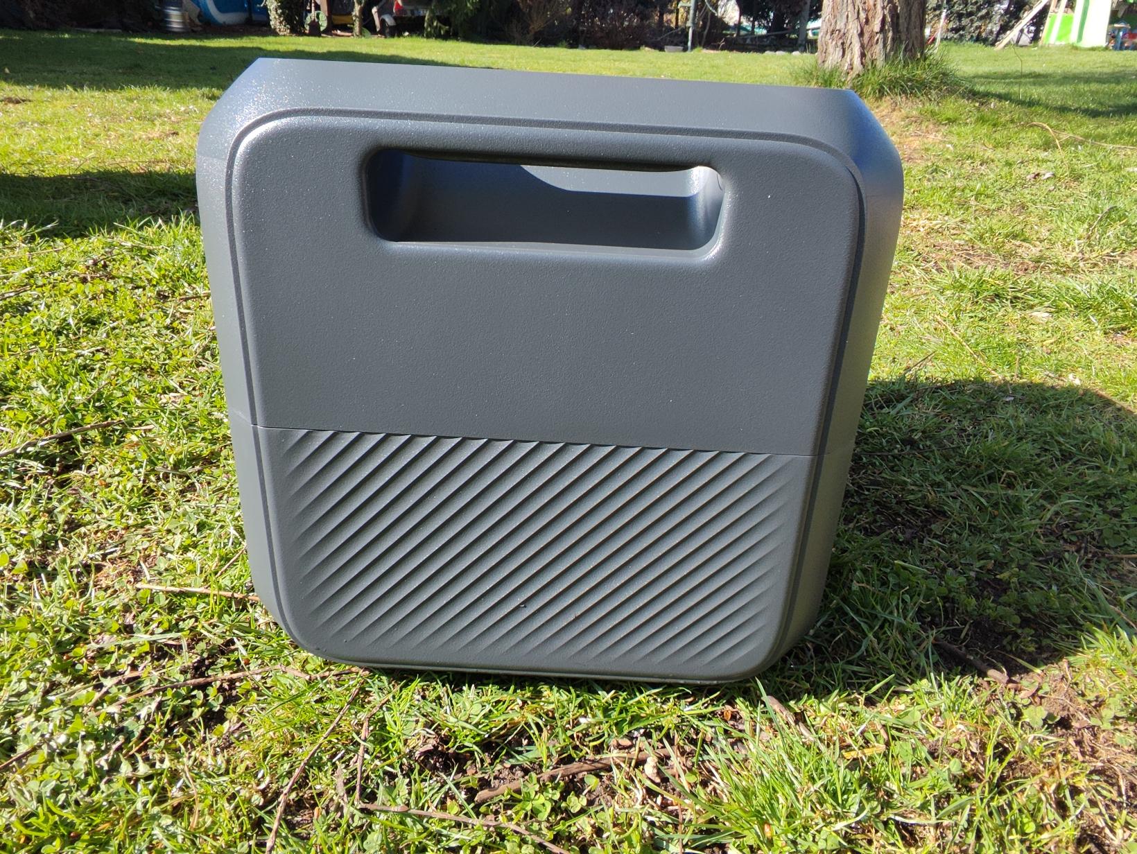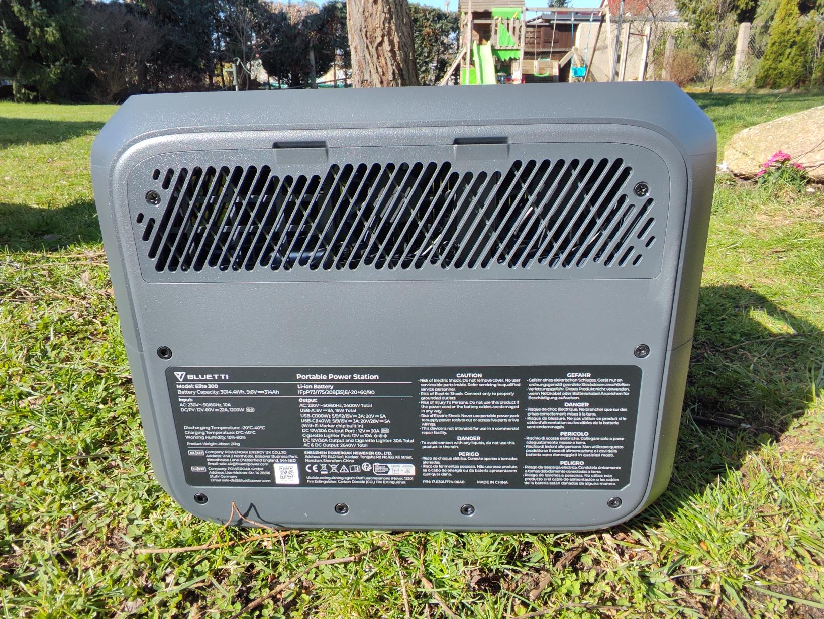 Wie bereits erwähnt, wurde das Kühlkonzept vollständig überarbeitet und befindet sich jetzt auf der Rückseite der Powerstation. Zwei 60mm-Lüfter auf der rechten Seite saugen Frischluft an, schicken diese durch einen Luftleitkanal und befördern die erwärmte Luft direkt links daneben wieder heraus. Somit saugen die Lüfter Teile der erwärmten Abluft wieder an. Meiner Meinung nach ist dieses Kühlkonzept sehr fragwürdig aufgebaut. Weiterhin ist die Position auf der Rückseite für einen vollintegrierten Einbau im Camper oder Wohnmobil ungünstig, da so immer ein Abstand zur dahinterliegenden Wand vorhanden sein muss. Trotz der überwiegenden Verwendung von Kunststoff ist die Verarbeitung der Bluetti Elite 300 insgesamt erstklassig und gibt keinen Anlass für Kritik.