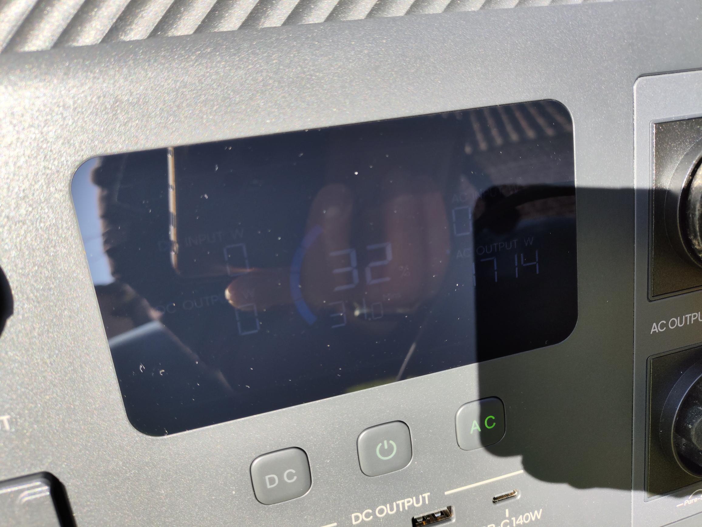 Während Powerstations von Bluetti bisher in jedem Test durch ein hervorragendes, gestochen scharfes und vor allem helles Display überzeugen konnten, müssen wir bei der Bluetti Elite 300 klare Abstriche machen. Zwar ist das Display von der Darstellungsqualität immer noch einwandfrei, doch die Helligkeit ist für den Außeneinsatz völlig unzureichend. Sobald die Sonne scheint, können wir auf dem Display nichts mehr erkennen. Bei ausreichend Verschattung bietet euch die Anzeige Informationen über Eingangs- und Ausgangsleistung, Akkustand, Restlaufzeit, aktivierte Eingänge/Ausgänge oder Fehlermeldungen/Betriebszustände.