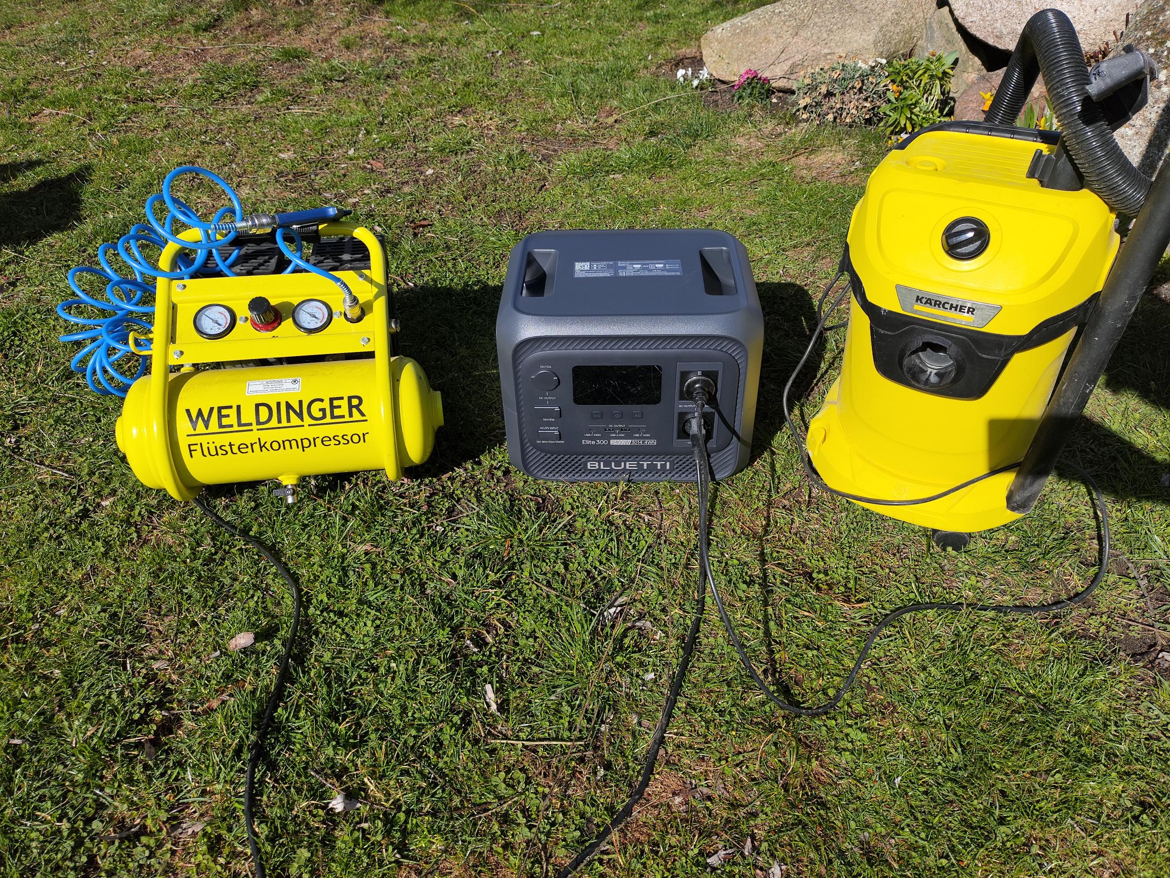 Mit einer Ausgangsleistung von 2.400W lassen sich nahezu alle Geräte in einem Haushalt versorgen. Auch das simultane Versorgen von mehreren Geräten mit hohen Anlaufströmen bereitet der Bluetti Elite 300 keine Probleme. Ein Industriestaubsauger und ein Kompressor konnten zusammen mit drei Kühlschränken zeitgleich betrieben werden. Dennoch sollte nicht unerwähnt bleiben, dass die Bluetti Elite 300 für ihre Kapazitätsklasse eher eine geringe Ausgangsleistung bietet. Powerstations anderer Hersteller liegen bei 3kWh Kapazität meist bei Leistungen von 3.000-4.000W. Im Power-Lifting-Modus können einfache elektrische Geräte mit bis zu 4.800W Gesamtleistung versorgt werden, ohne dass die Powerstation abschaltet. Zwei Wasserkocher mit jeweils 2.200W konnten wir problemlos betreiben. Die Powerstation versorgte die Geräte mit jeweils 1.200W, wodurch das Kochen des Wassers einfach mehr Zeit benötigte.