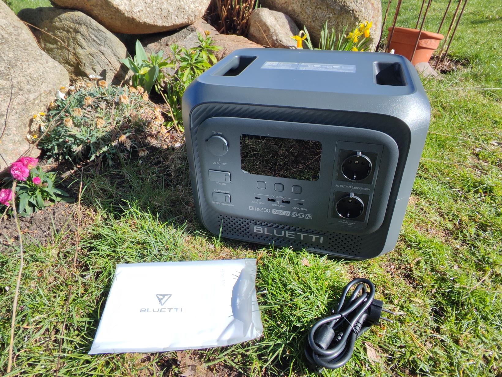 Der Lieferumfang der Bluetti Elite 300 ist schnell zusammengefasst. Neben der Powerstation liegen lediglich eine Bedienungsanleitung und ein AC-Ladekabel mit einer Länge von 150 Zentimetern bei. Auf ein Solar- (XT60 auf MC4) oder Kfz-Ladekabel (XT60 auf Kfz-Buchse) verzichtet der Hersteller. Diese können optional als Zubehör direkt bei Bluetti oder von Drittanbietern über Amazon erworben werden.