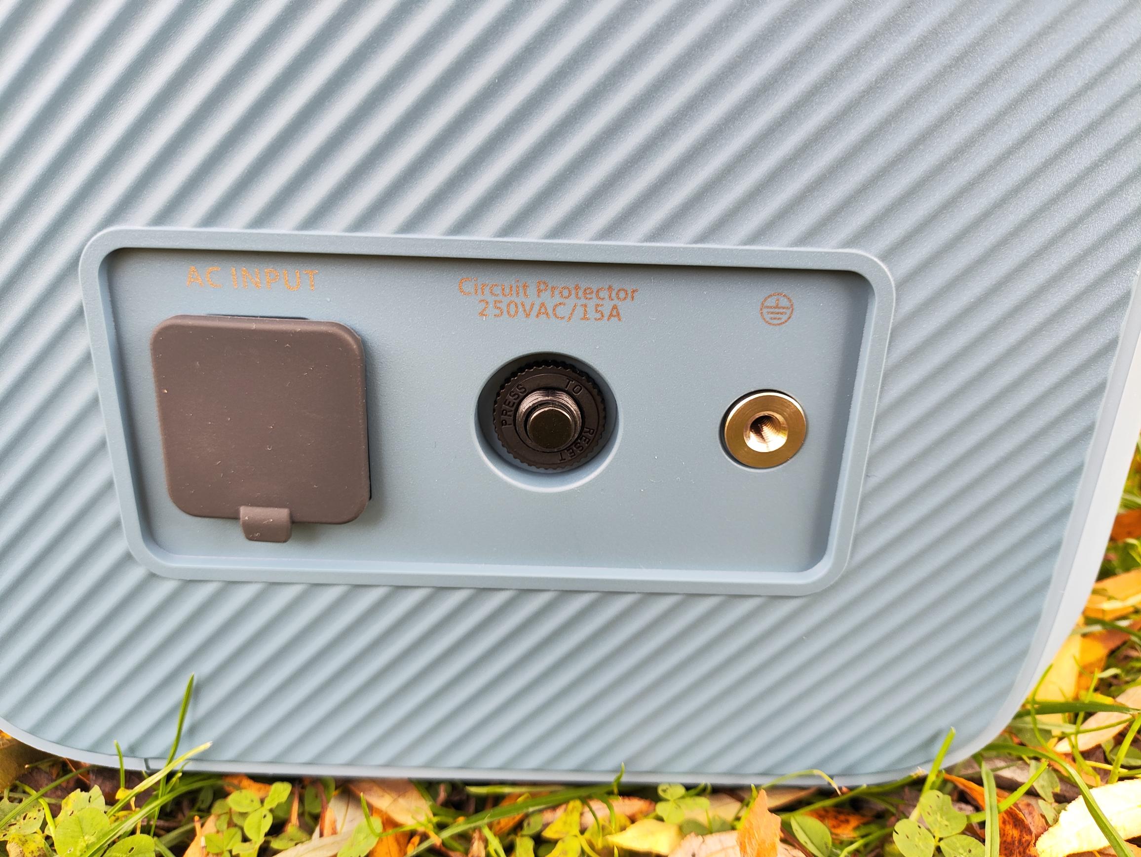 Dank der zwei praktischen Tragegriffe auf der Oberseite ist ein Transport auch über weitere Strecken für eine kräftige Person möglich. Bis auf die Kaltgerätebuchse (AC-Ladung) befinden sich alle Anschlüsse auf der Vorderseite. Neben die AC-Ladebuchse befinden sich noch ein Sicherungselement und ein Anschluss für ein Erdungskabel. Das Sicherungselement löst bei Überlast (15 Ampere) aus und kann manuell zurückgesetzt werden. Für die nötige Kühlung verbaut Bluetti zwei 80mm Lüfter in den Seiten der Pioneer. Die Verarbeitung der gesamten Powerstation ist durchweg exzellent und gibt keinen Anlass für Kritik.
