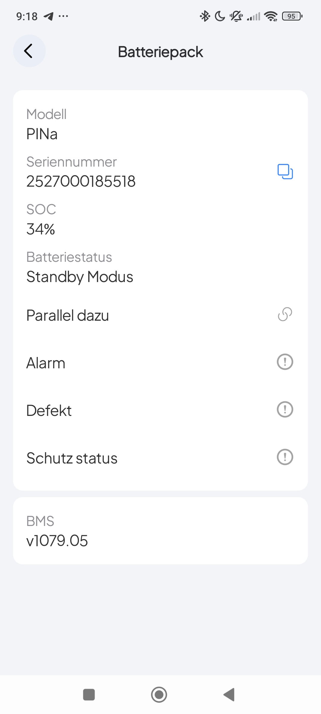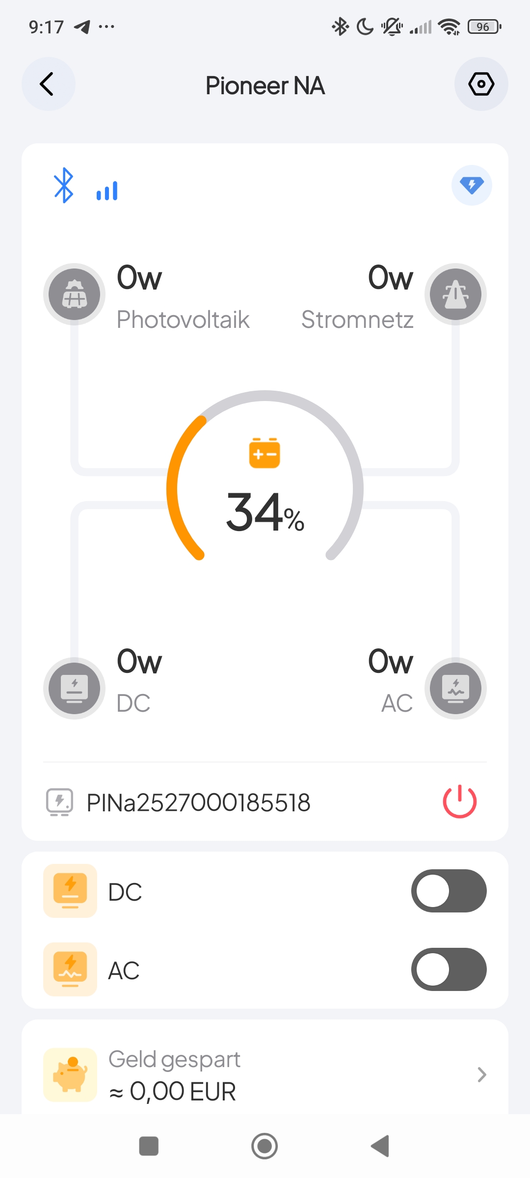Nach erfolgreicher Installation wird die Bluetti Pioneer Na einfach mittels der Bluetooth-Suche hinzugefügt. Die Powerstation bietet lediglich eine Verbindung über Bluetooth an. Warum der Hersteller hier auf die WLAN-Konnektivität verzichtet hat, können wir nicht nachvollziehen, zumal bisherige Modelle sowohl Bluetooth als auch WLAN unterstützten. Somit bleibt der Fernzugriff auf einen Umkreis von wenigen Metern beschränkt. Die Startseite bietet euch alle Informationen, die auch auf dem Display angezeigt werden. Ihr erhaltet hier Echtzeitdaten zum Akkustand, Eingangs- und Ausgangsleistung AC/DC, Ladeleistung und weiterführende Details zum Akkustatus. In den jeweiligen Untermenüs können sogar Informationen zu Netzfrequenz, PV-Spannung und Stromstärken ausgelesen werden.