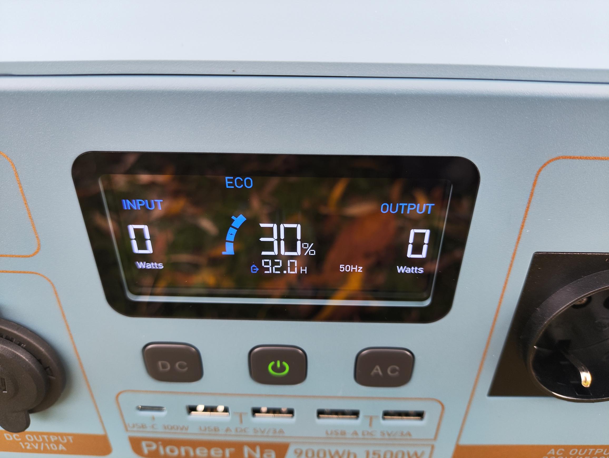 - Display und Bedienung der Bluetti Pioneer Na