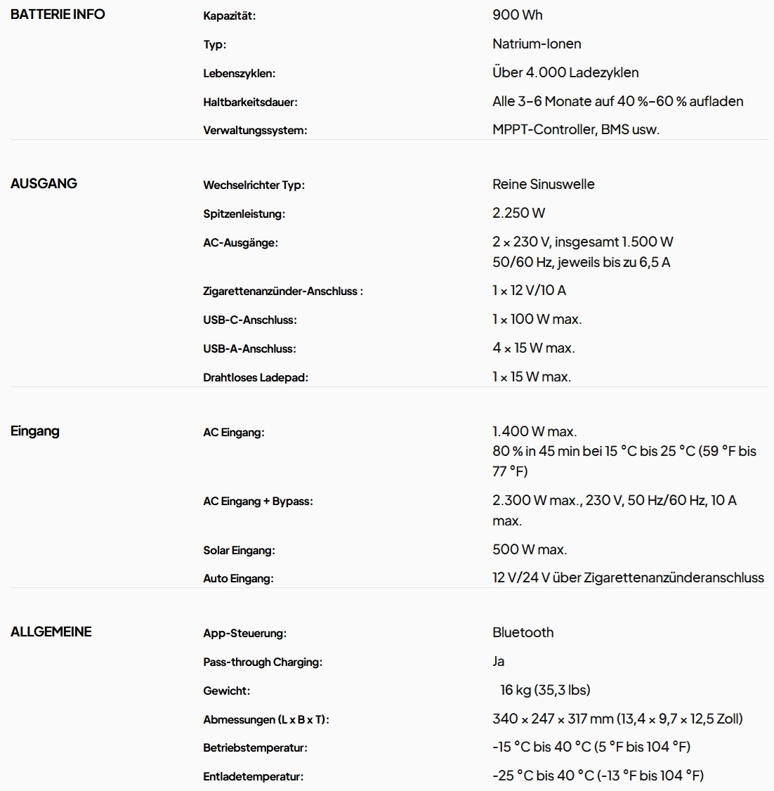 - 2x AC-Wechselstromsteckdose (1.500W Gesamtleistung)