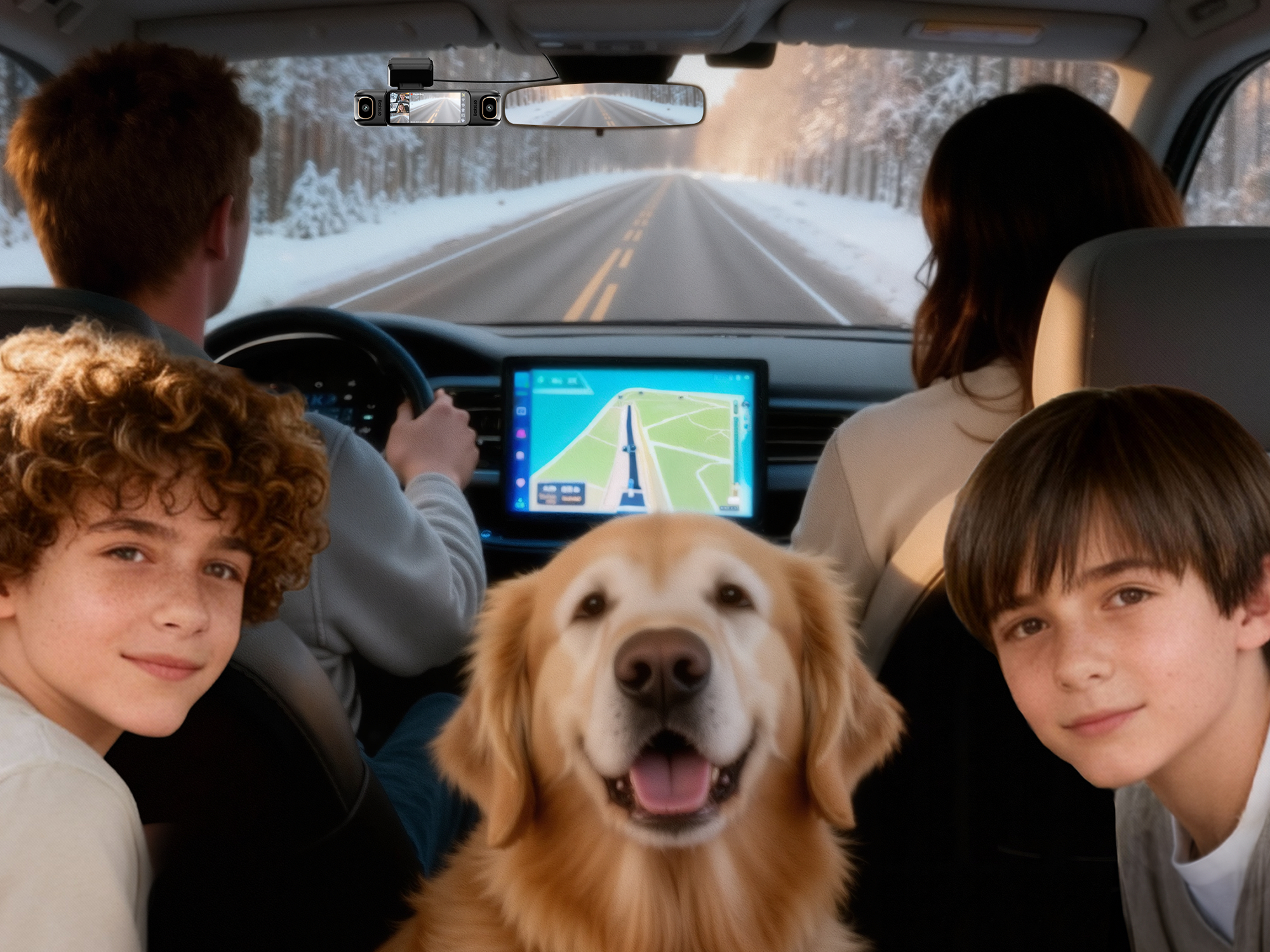 Das Besondere an diesem Setup ist die Vielseitigkeit der dritten Linse. Da sich die Innenraumkamera um 360° drehen lässt, habt ihr die Wahl: Wollt ihr dokumentieren, was auf der Rückbank passiert (ideal für Taxifahrer oder Ridesharing), oder richtet ihr sie auf das Seitenfenster, um einen toten Winkel zu eliminieren? Technisch wird hier die Auflösung der Heck- und Innenkamera auf Full-HD (1080p) gesetzt, um die 4K-Front nicht auszubremsen.