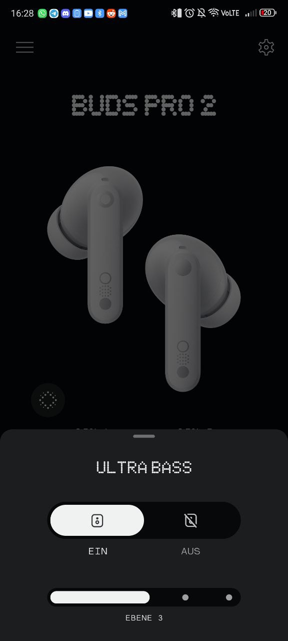 Womit wir auch schon beim offensichtlichsten Punkt wären. Ultra Bass ist ein feines Feature, denn die CMF Buds Pro 2 haben kräftige Bassreserven, auch wenn schon im Normalbetrieb ein deutlicher Bassfokus herauszuhören ist. Schaltet man das Feature ein, donnern einem die Schallwellen nur so um die Ohren. Hinzu kommt, dass die Kopfhörer recht laut sind. Schon bei knapp über 50 Prozent wird ein Pegel erreicht, der auch ohne ANC fast alle Außengeräusche ausblendet.