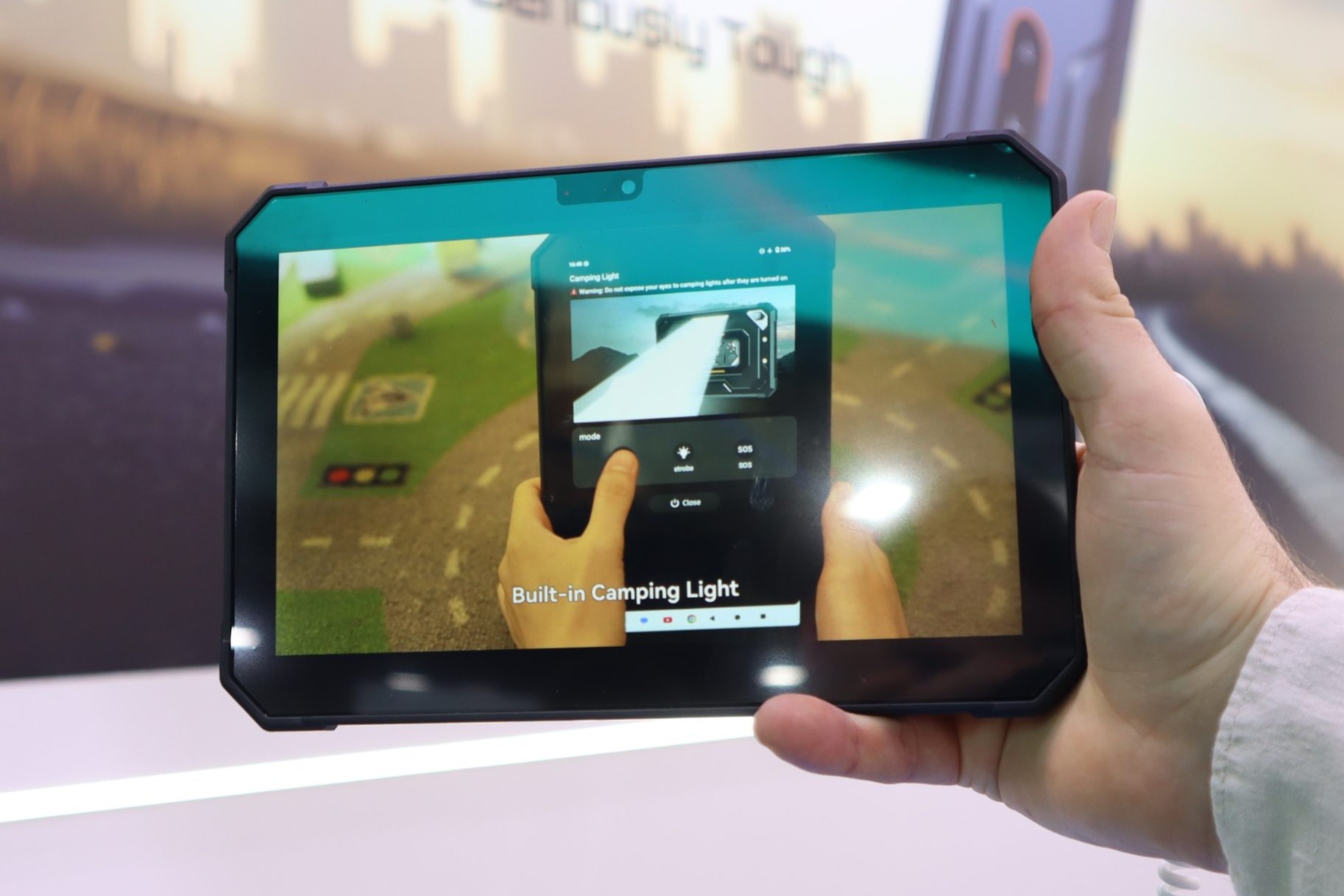 Das funktionale Highlight für den Arbeitseinsatz oder Camping-Ausflug ist die integrierte LED-Leuchte, die eine Helligkeit von 770 Lumen erreicht. Um die Bedienung zu erleichtern, spendiert Cubot dem Tablet einen dedizierten, orangefarbenen Hardware-Button an der Gehäuseseite, über den ihr die Lampe direkt einschalten könnt.