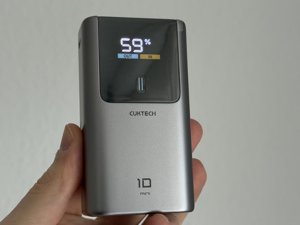 Die Cuktech 10 Mini ist eine erstklassige Mini-Powerbank. Im Vergleich zur Cuktech 10 (zum Test) sinkt die Leistung zwar deutlich von 120W auf 55W, dafür verringern sich aber auch Abmessungen und Gewicht. Für eine Mini-Powerbank ist das Modell sehr gut ausgestattet und bietet dank HyperCharge-Support und 45W PPS eine hohe Leistung für viele Smartphones. Sie lädt flott auf, bietet einen großzügigen Lieferumfang und verfügt über ein gutes sowie genaues Display. Echte Kritikpunkte sind rar: Als klassische Smartphone-Powerbank erhaltet ihr die Schnellladung nur einzeln über einen Port. Für einen Straßenpreis von 30€ bekommt ihr somit ein umfangreiches Gesamtpaket und eine ideale Smartphone-Powerbank. Wer noch mehr Leistung möchte, sollte sich die Cuktech 10 anschauen, die mittlerweile ebenfalls ab 30€ erhältlich ist.