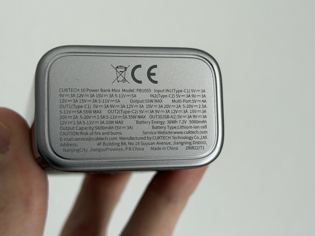 Kapazität der Cuktech 10 Mini Powerbank