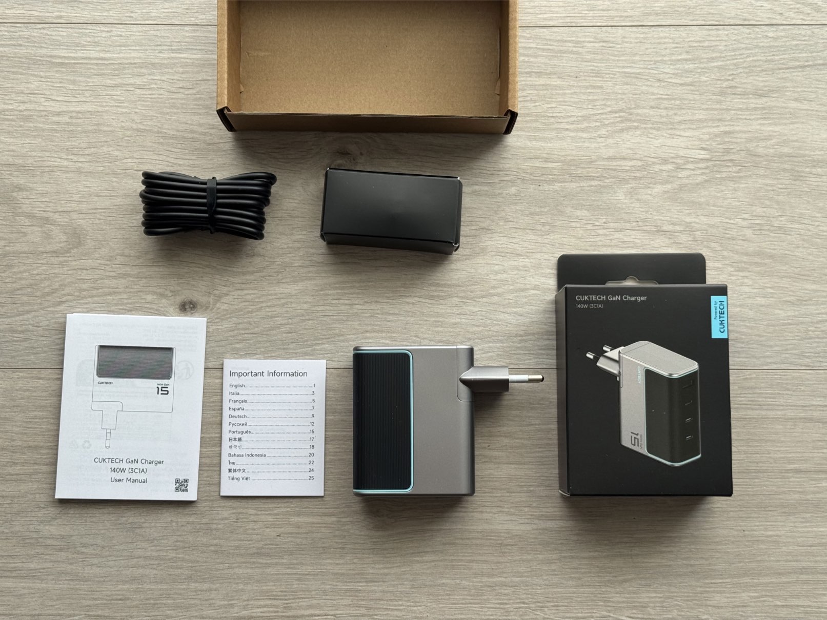 Lieferumfang des Cuktech 140W Ladegeräts