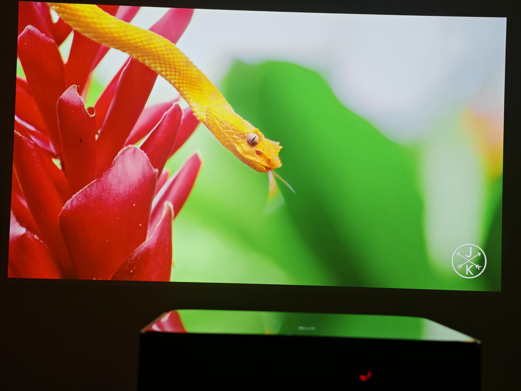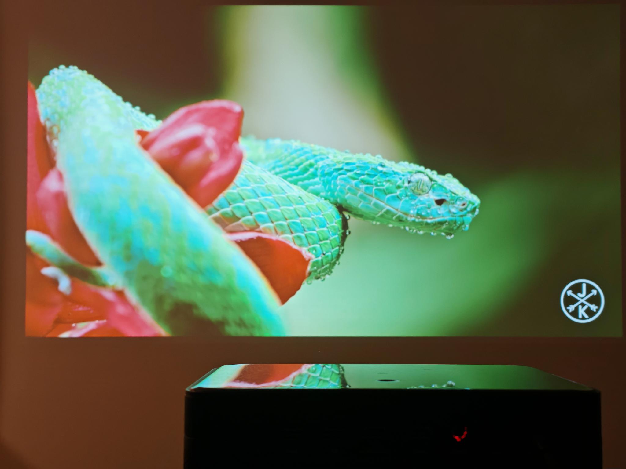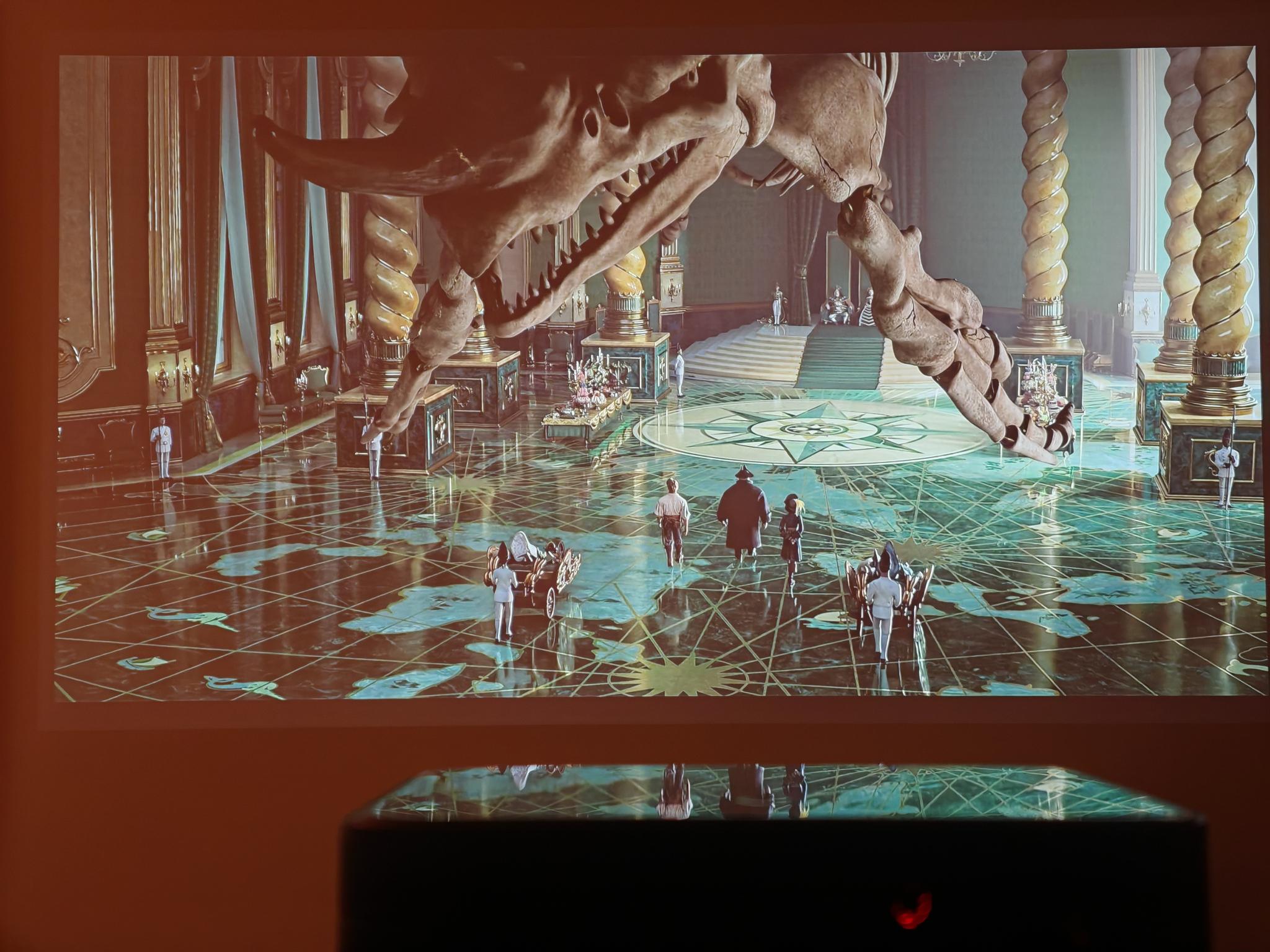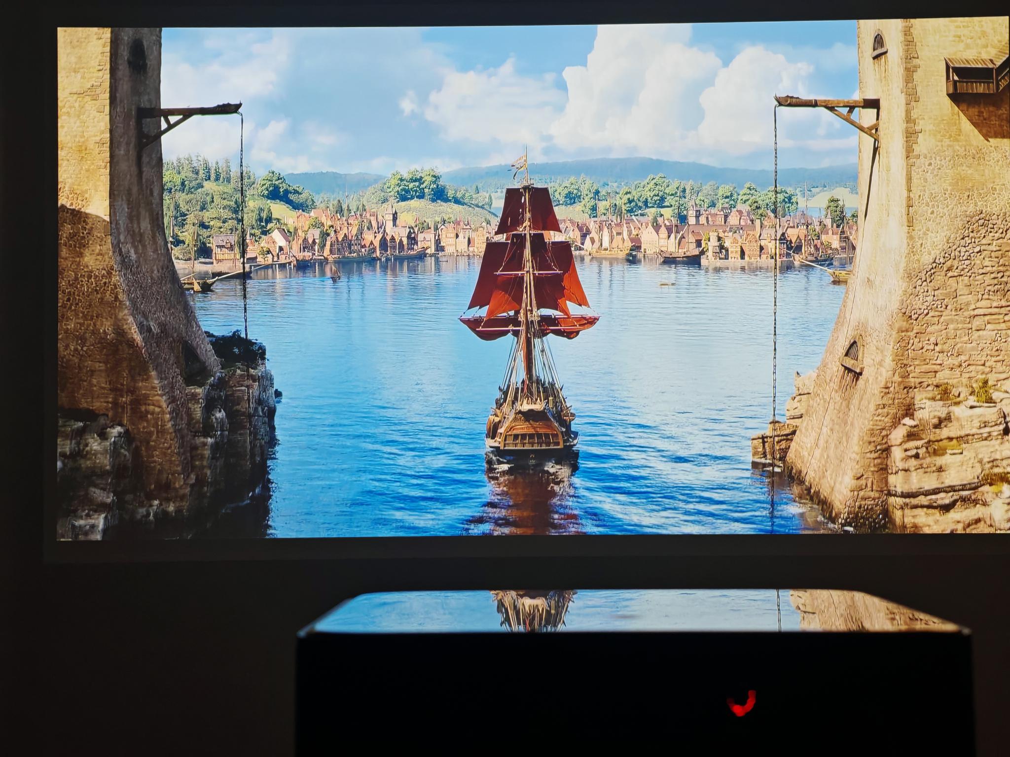Ist das Bild eingestellt, erzeugt der Beamer eine sehr helle und scharfe Projektion, die auch in schwierigen Situationen (z. B. bei schrägen Projektionen) im richtigen Format erscheint. Der Dangbei Mars Pro 2 schafft eine sehr natürliche und kontrastreiche Projektion. Damit macht es richtig Spaß, einen cineastischen Film mit über 80 Zoll anzuschauen. Vor allem größere Projektionen sind durch die 4K-Schärfe ein wahrer Augenschmaus – selbst bei einem 100 Zoll großen Bild wirkt alles noch gestochen scharf. Dank MEMC stellt der Beamer schnelle Bewegungen und Kamerafahrten auch butterweich dar. Der Dangbei Mars Pro 2 verfügt zudem über eine natürlichere Bildkonfiguration als das neuere Modell DBOX02 Pro und ist trotz der kompakteren Bauform heller.