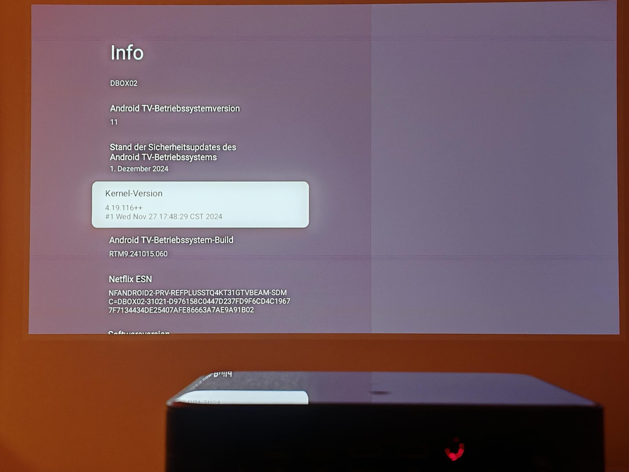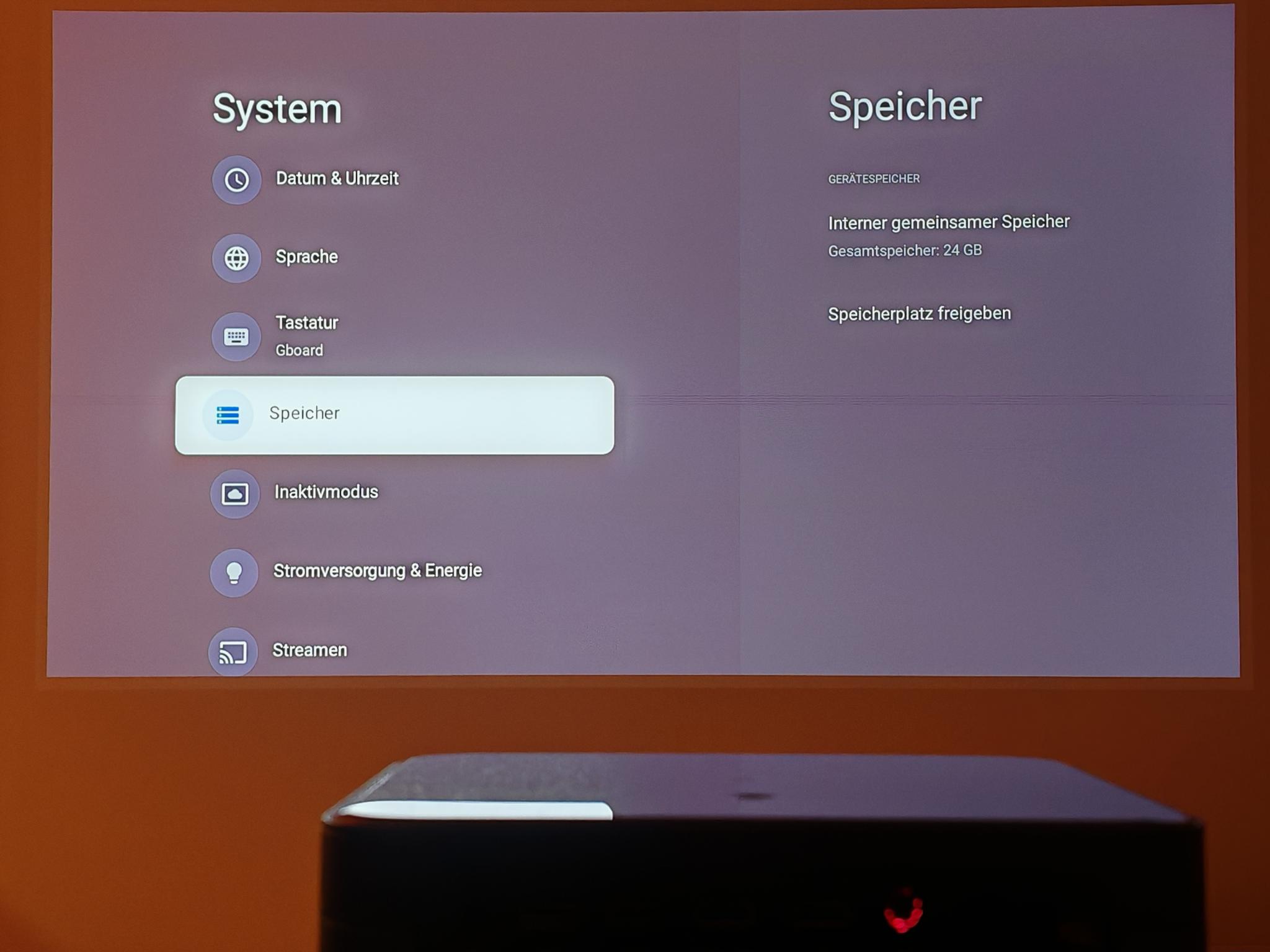 Wie viele andere kompakte Beamer setzt Dangbei beim Mars Pro 2 auf Google TV. Das Betriebssystem läuft mit 2GB RAM und 32GB Festspeicher. Verbunden wird der Dangbei Mars Pro 2 über WiFi 6 und Bluetooth 5.2. Die WLAN-Verbindung blieb bei mir sowohl unter 2,4GHz als auch über 5GHz immer stabil und ich hatte trotz einiger Wände als Hindernisse immer ein volles Signal. Auch Chromecast unterstützt das System problemlos. Mit einem angeschlossenen Bluetooth-Lautsprecher konnte ich den Raum wechseln, ohne dass der Ton verzerrte.