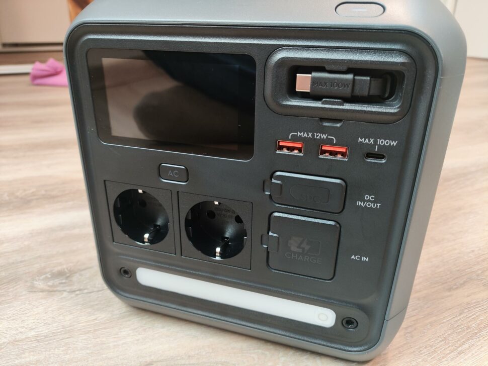 Ohne optionales Zubehör bietet die DJI Power 1000 Mini lediglich zwei Lademöglichkeiten an. Zum einen kann die Powerstation über das AC-Ladekabel mit bis zu 1.000W geladen werden und zum anderen ist eine Ladung über den USB-C-Port mit 100W möglich.