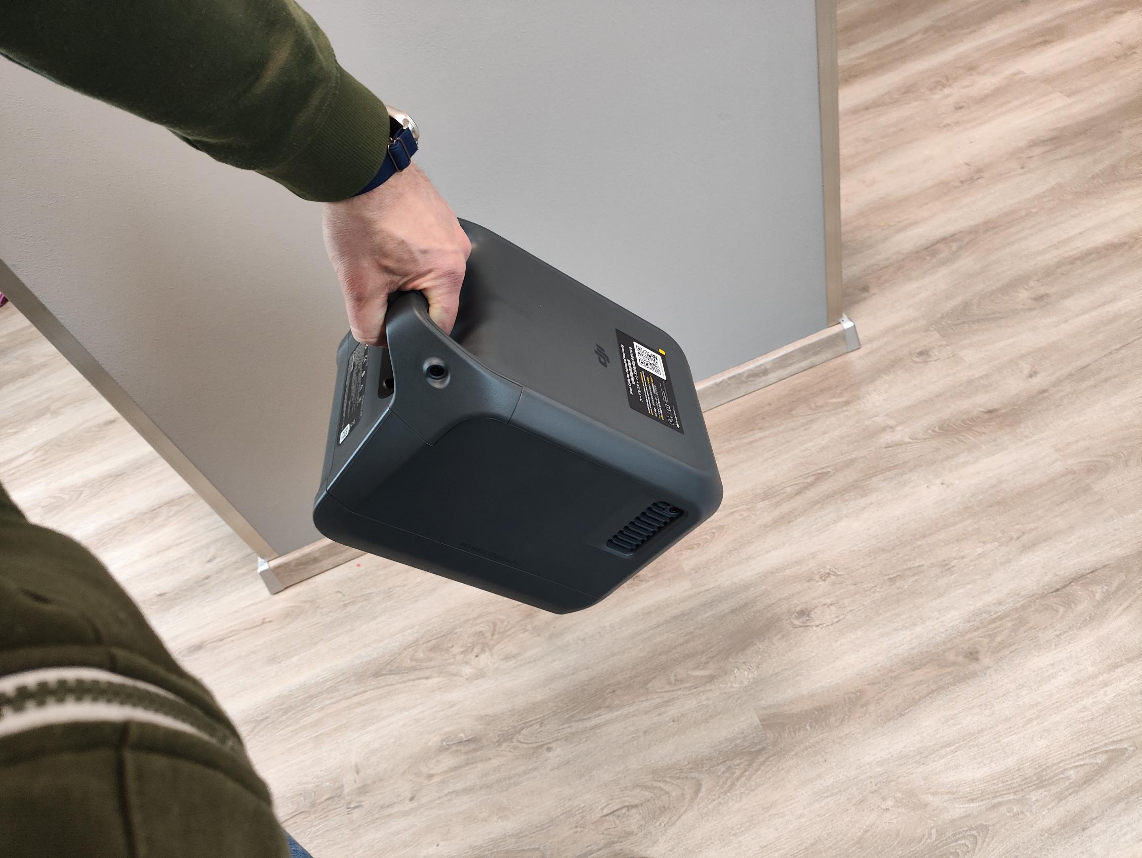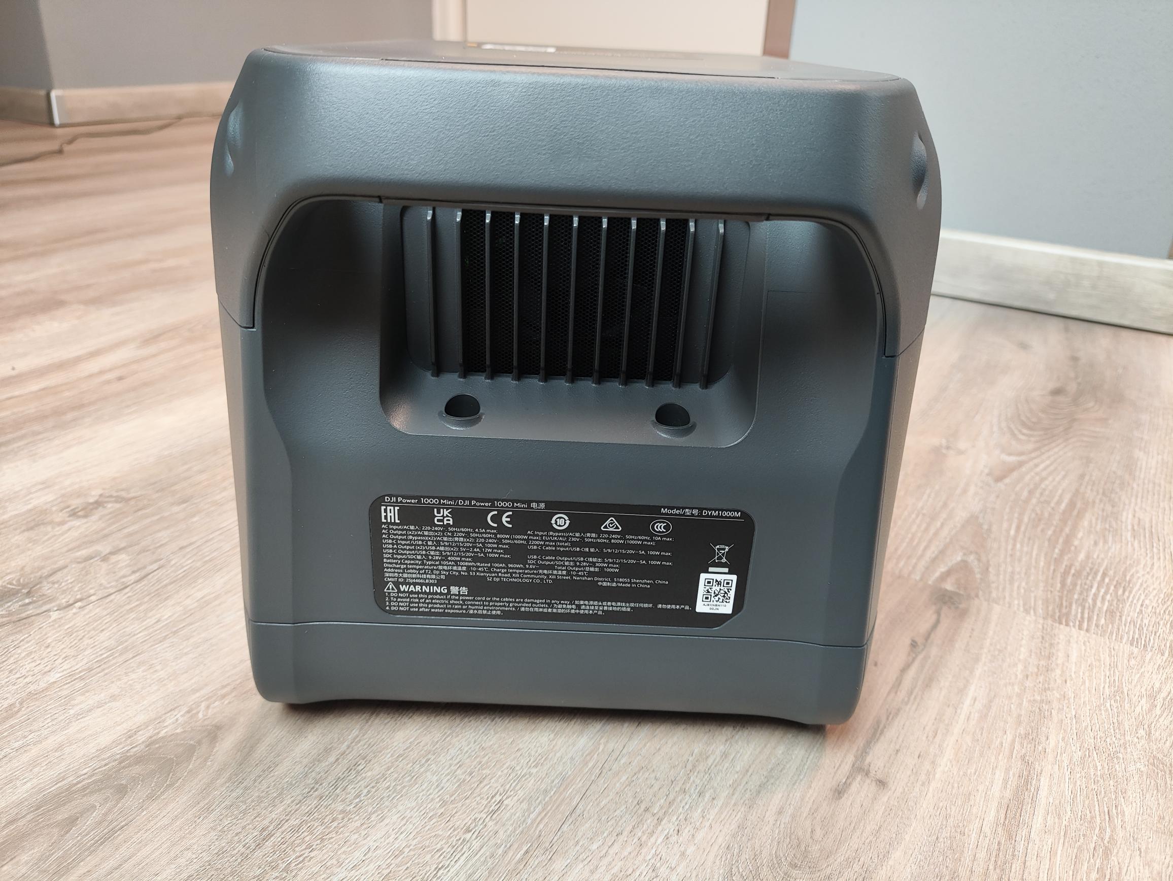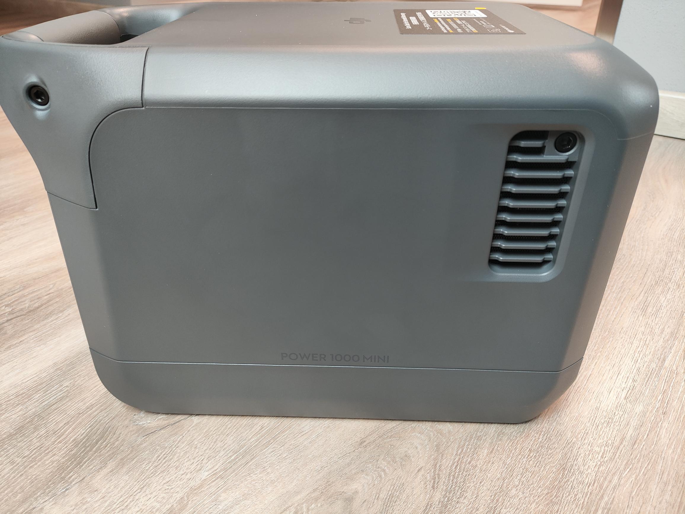 Mit Abmessungen von nur 31,4 x 21,2 x 21,6 Zentimeter und einem Gewicht von 11,5 Kilogramm gehört die DJI Power 1000 Mini zu den kompaktesten Powerstations im 1kWh-Sektor. Dank des Tragegriffes auf der Rückseite ist ein Transport über längere Distanzen kein Problem. Um einen effektiven Abtransport der Verlustleistung zu garantieren, verbaut DJI auf der Rückseite einen Lufteinlass, während an den Seiten die warme Abluft ausgestoßen wird. Trotz der ausschließlichen Verwendung von Kunststoff ist die Verarbeitung erstklassig und gibt keinen Anlass für Kritik.