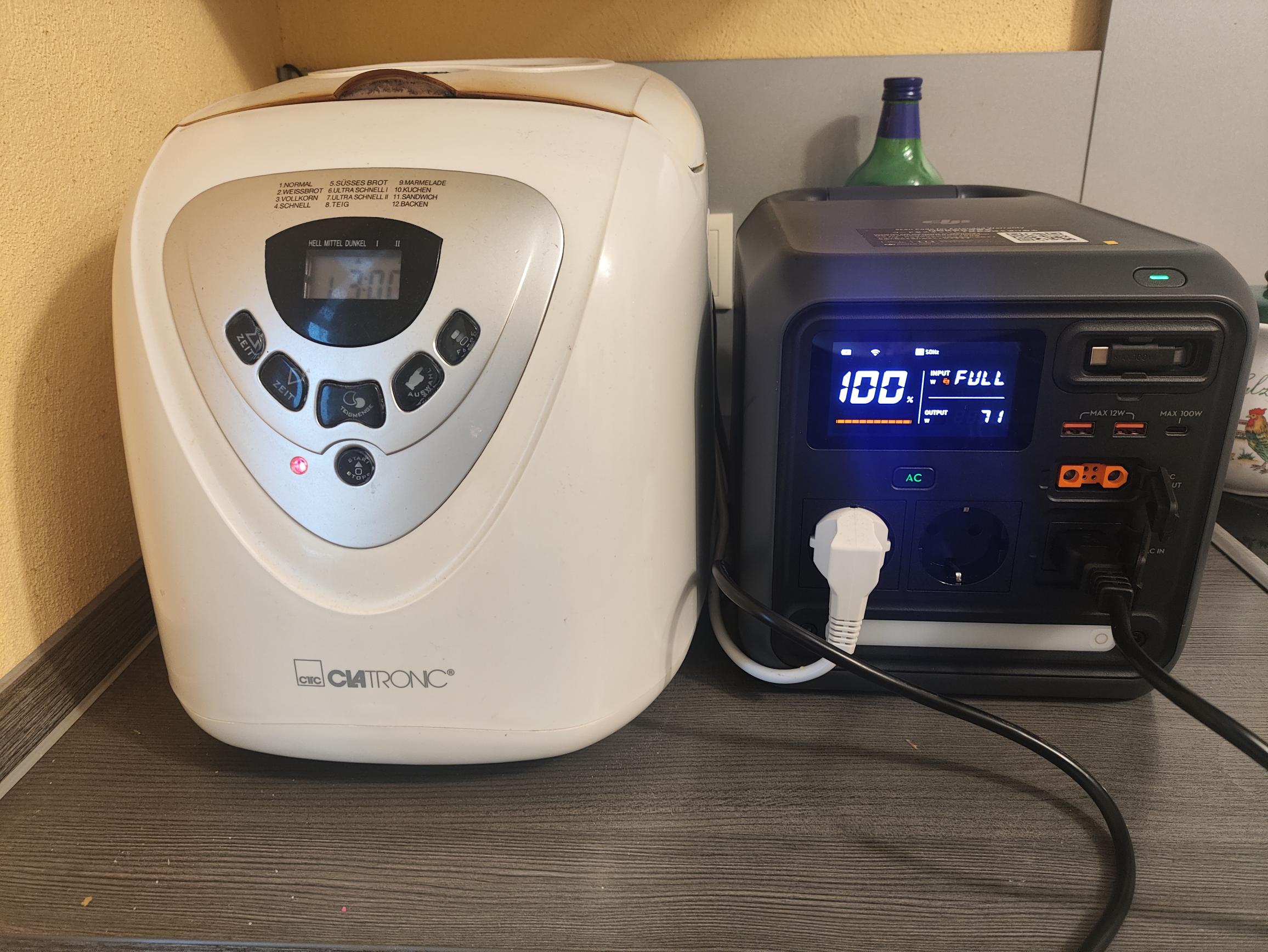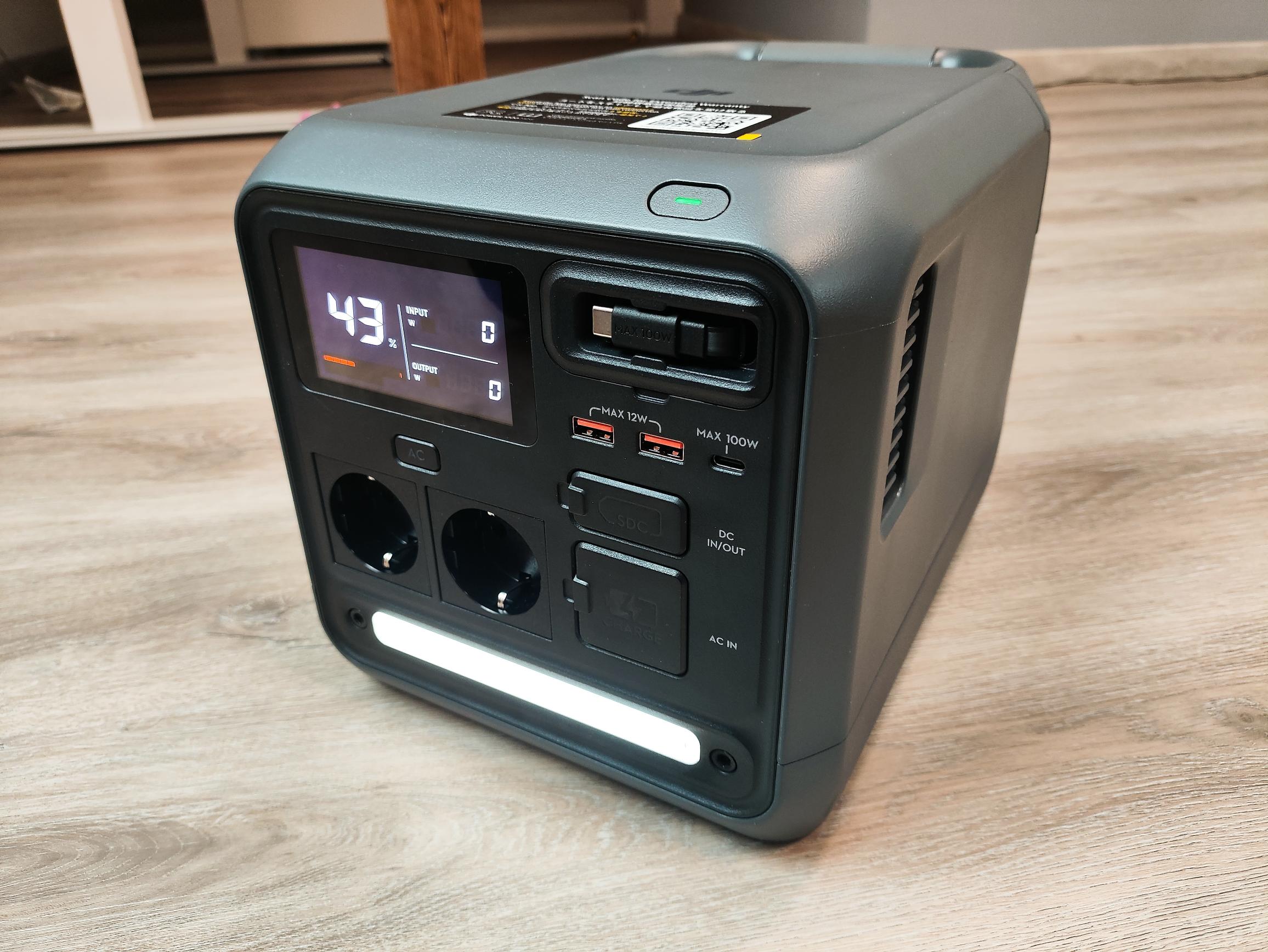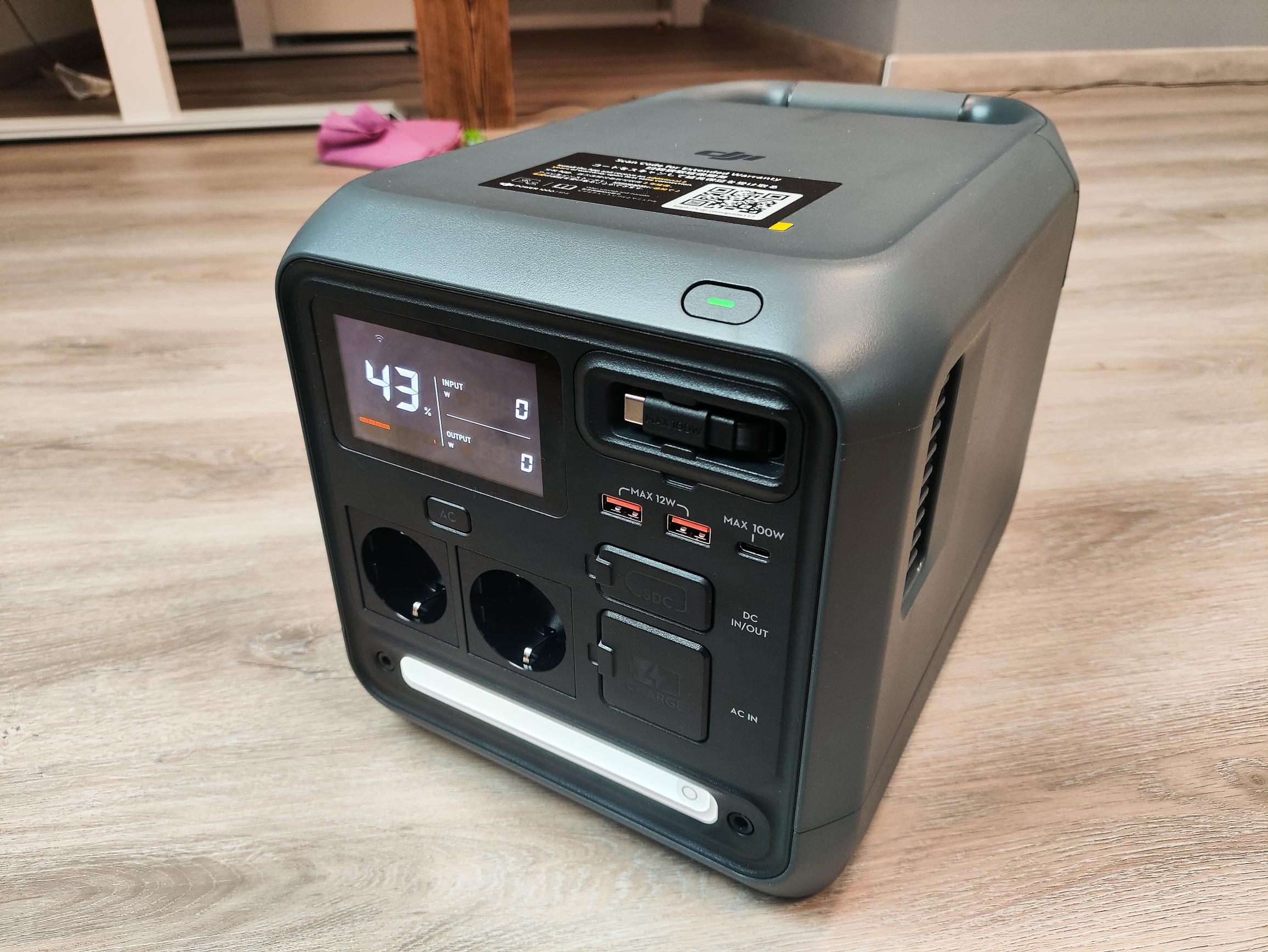 Die DJI Power 1000 Mini bietet mit einer Dauerleistung von 1.000W eine vergleichsweise niedrige Ausgangsleistung. Die Konkurrenz schafft bei ähnlicher Kapazität problemlos Leistungswerte von über 2.000W. Allerdings dürft ihr nicht vergessen, dass die DJI Powerstation aufgrund der kompakten Abmessungen nur sehr wenig Raum für einen leistungsfähigen Wechselrichter bietet. Im Test konnten Geräte bis zur Leistungsgrenze von 1.000W (Föhn, Heizlüfter, Brotbackautomat, Stichsäge) betrieben werden. Kurzzeitig (wenige Sekunden) sind auch Leistungen bis zu 1.200W möglich. Geräte mit hohem Anlaufstrom bereiten der Powerstation allerdings Probleme. Von drei Kühlschränken verweigerte einer seinen Dienst und ein 750W Kompressor mit 1.300W Anlaufleistung konnte ebenfalls nicht versorgt werden. Werden die AC-Steckdosen überlastet, werden nicht nur diese, sondern die komplette Powerstation ohne Fehlermeldung abgeschaltet. Um diese wieder in Betrieb zu nehmen, muss die Powerstation neu gestartet werden.