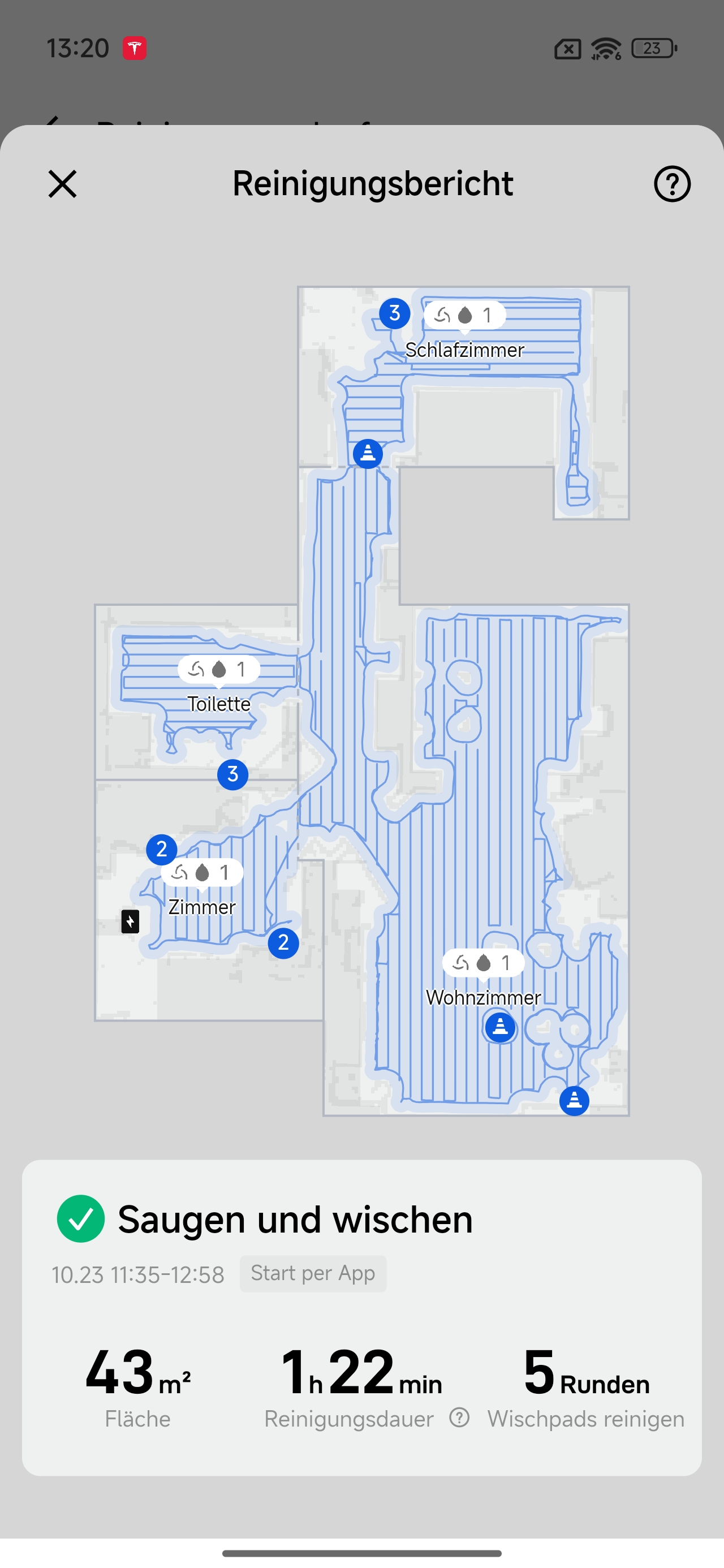 - Reinigungsverlauf mit Karte und Fläche einsehen
