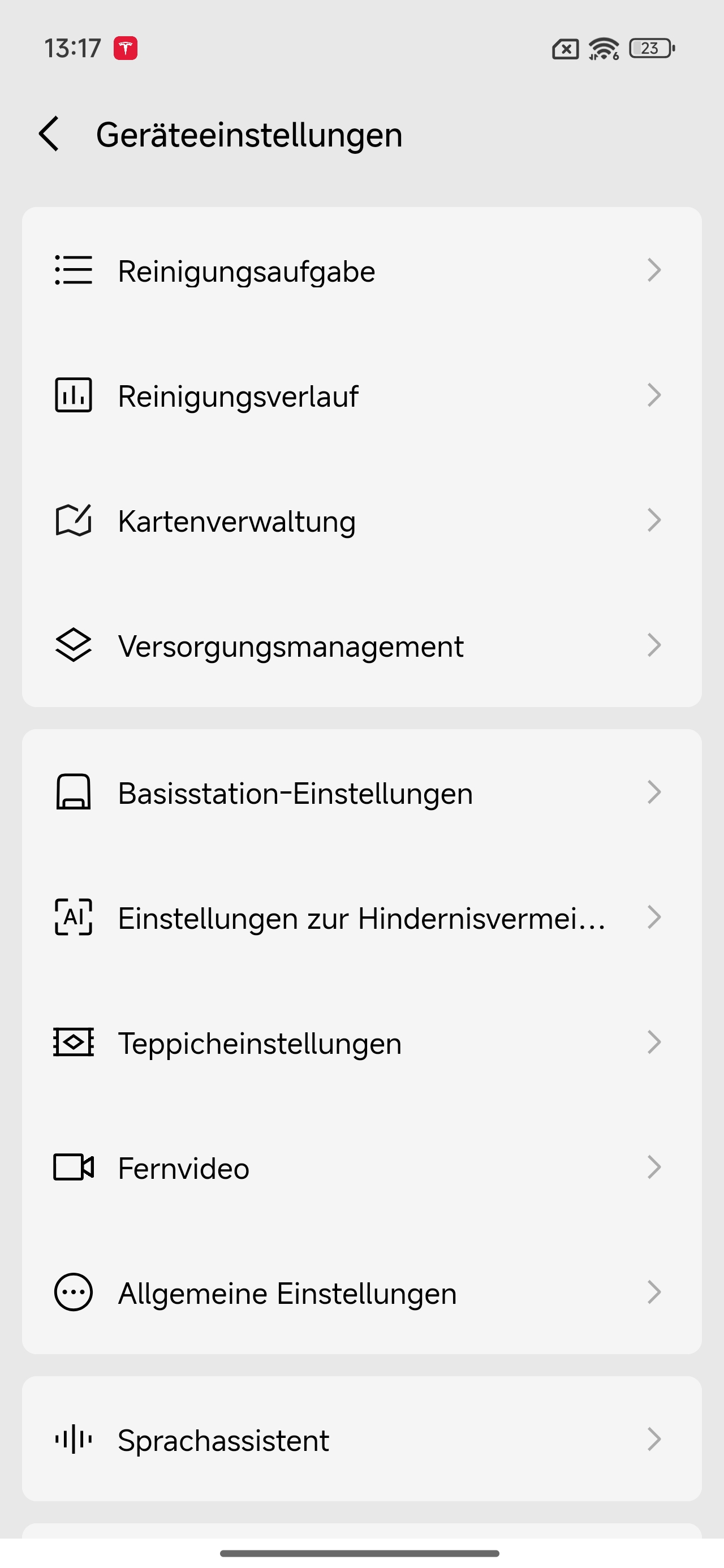 - Teppichmodus (z. B. Saugkraft erhöhen oder Teppich meiden)