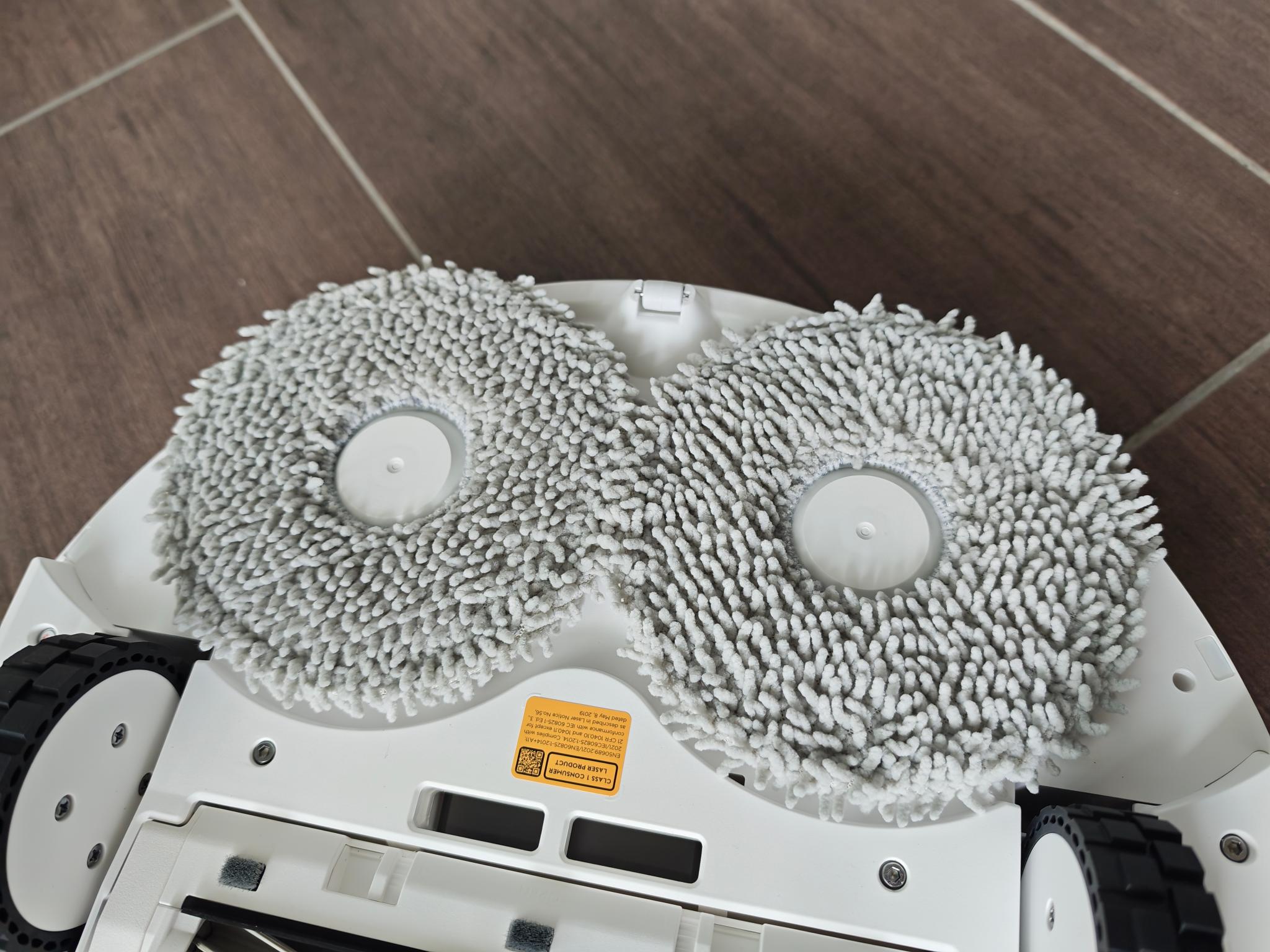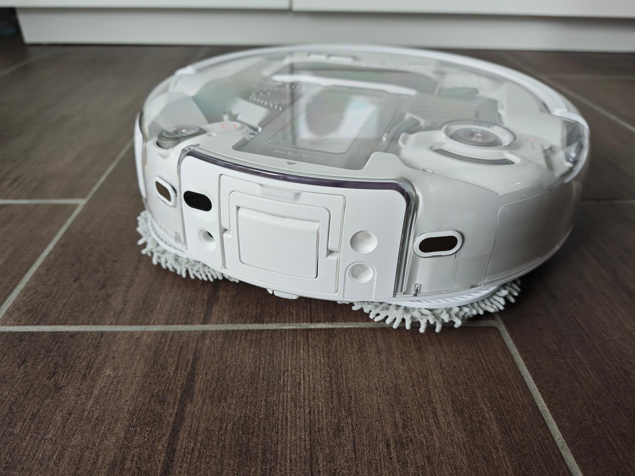 Obwohl ich den Wasserdurchfluss nur auf Mittel hatte, war immer eine schöne nasse Spur hinter dem DJI Romo P zu sehen. Damit entfernte der Romo nicht nur frische, sondern auch eingetrocknete Flecken spätestens beim zweiten Durchgang. Da kein Ablegen der Wischpads, sondern nur ein Anheben (2cm) möglich ist, eignet sich der Romo P mit einem weiteren Punkt einfach weniger für Haushalte mit viel Teppich. Aber auf Hartböden glänzt der DJI wirklich mit einer super Wischleistung und kann alle Flecken selbst in Ecken mit dem ausfahrbaren Wischmopp gut erreichen und entfernen.