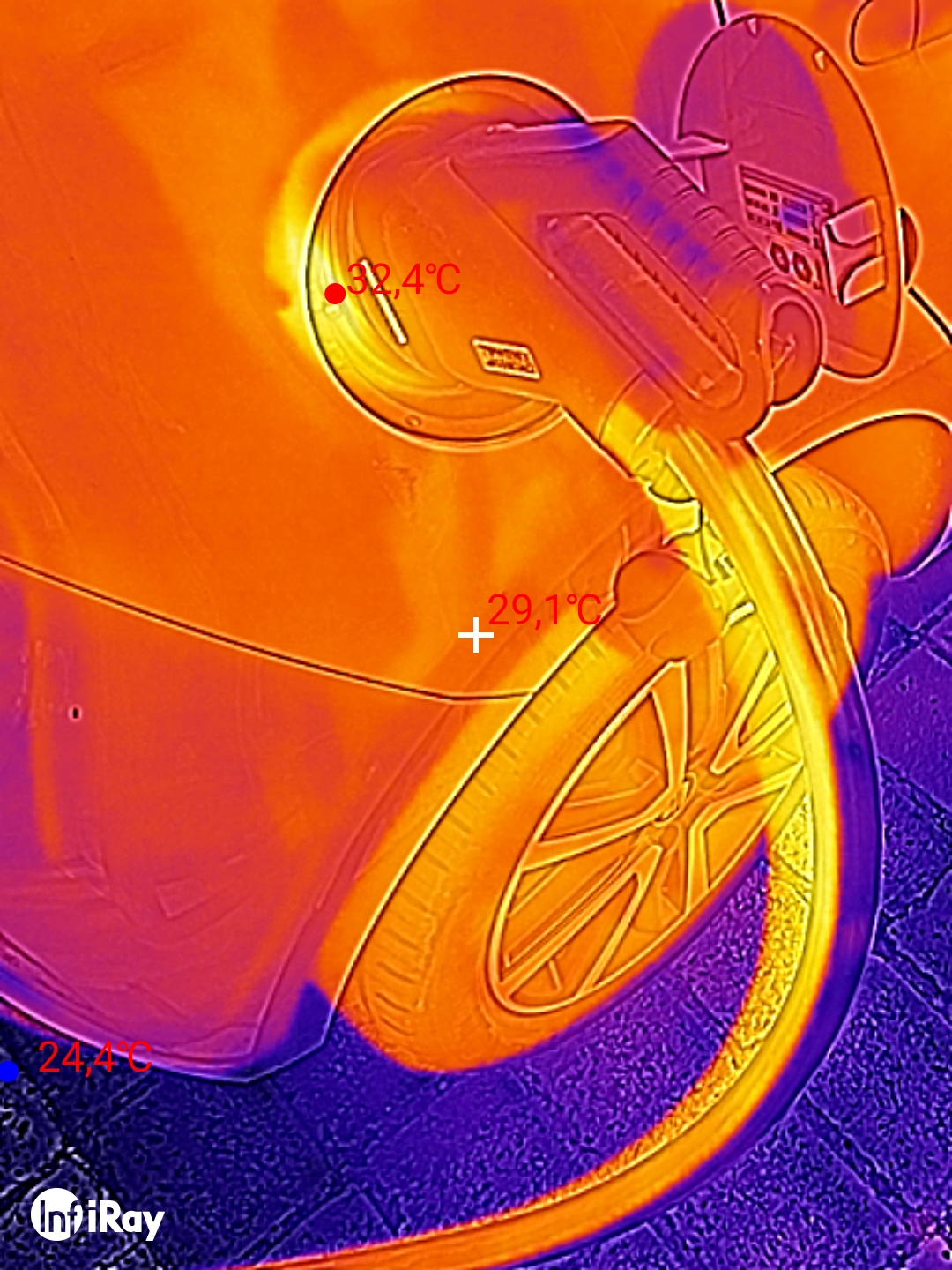- Die Reifen sind abgekühlt, aber die Ladeleistung ist sichtbar