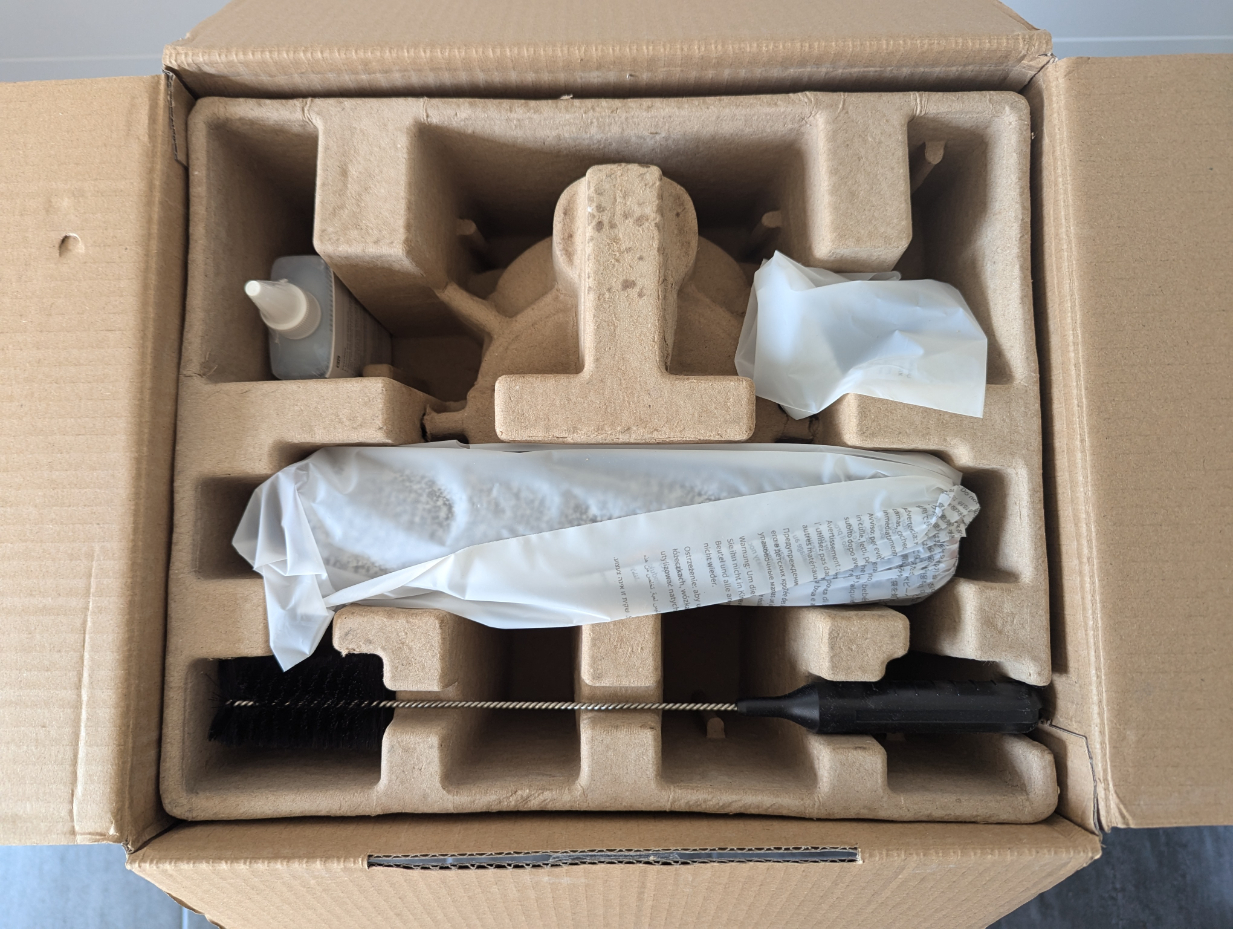 Der Dreame H14 Pro kommt, wie auch schon sein Vorgänger double-boxed zu Euch nach Hause. Öffnet man den Karton, erblickt man direkt den aufgedruckten Quick Start Guide, der die wichtigsten Handgriffe zur Inbetriebnahme des Geräts erklärt. Als Nächstes stößt man dann passenderweise auf die Bedienungsanleitung, bevor man die ersten Zubehörteile und schließlich den Wischsauger selbst entnehmen kann. Alle Teile haben ihren festen Platz und sind mit Folie etc. versehen, sodass der Wischsauger heile und ohne Kratzer bei Euch zu Hause ankommt.