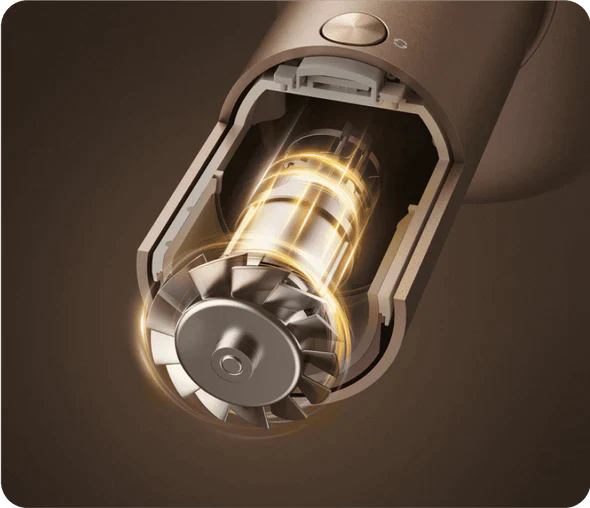 Äquivalent zu Dyson und Laifen verbaut auch Dreame einen Hochgeschwindigkeitsmotor, der mit 110.000 Umdrehungen pro Minute arbeitet, direkt im isolierten Griff. Das hat den großen Vorteil, dass sich der Schwerpunkt unmittelbar in der Hand befindet und nicht im Kopf des Geräts. Das kommt dem Tragekomfort sehr zugute.
