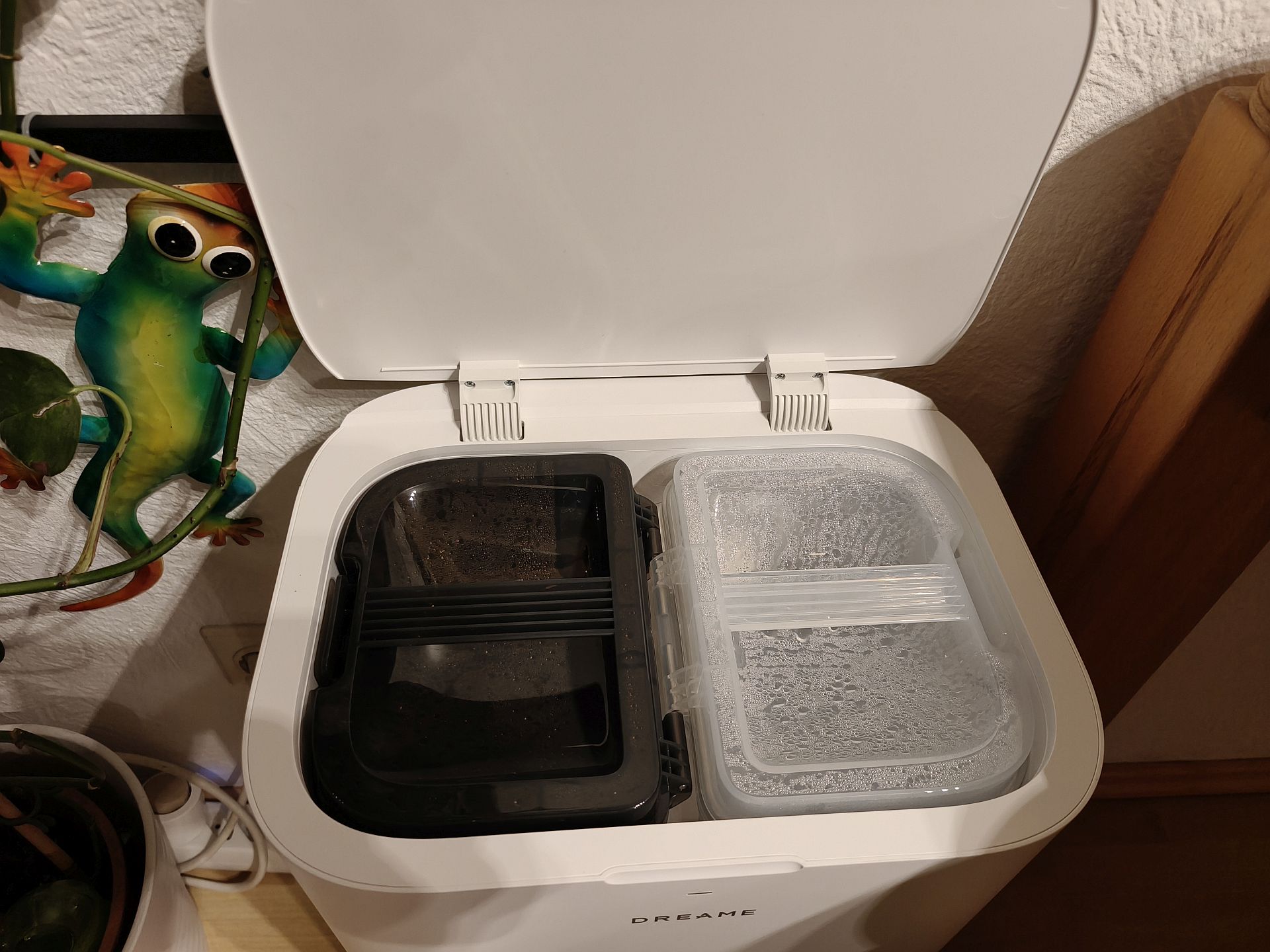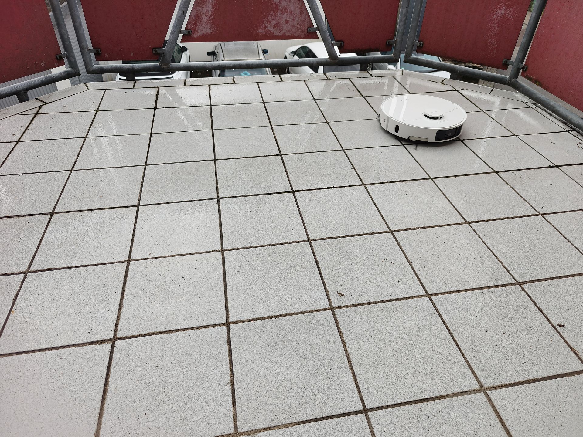 Im Einsatz in meiner Wohnung und auf meinem Balkon hat der Dreame L10s Ultra Gen3 eine gute Reinigungsleistung erbracht. Besonders das Wischen auf dem Balkon hat einen sehr guten Reinigungseffekt gezeigt, auch wenn ich danach die Waschstation der Wischmops reinigen musste. Neben dem Bild vom Balkon seht ihr ein Bild vom geleerten Schmutzwassertank.