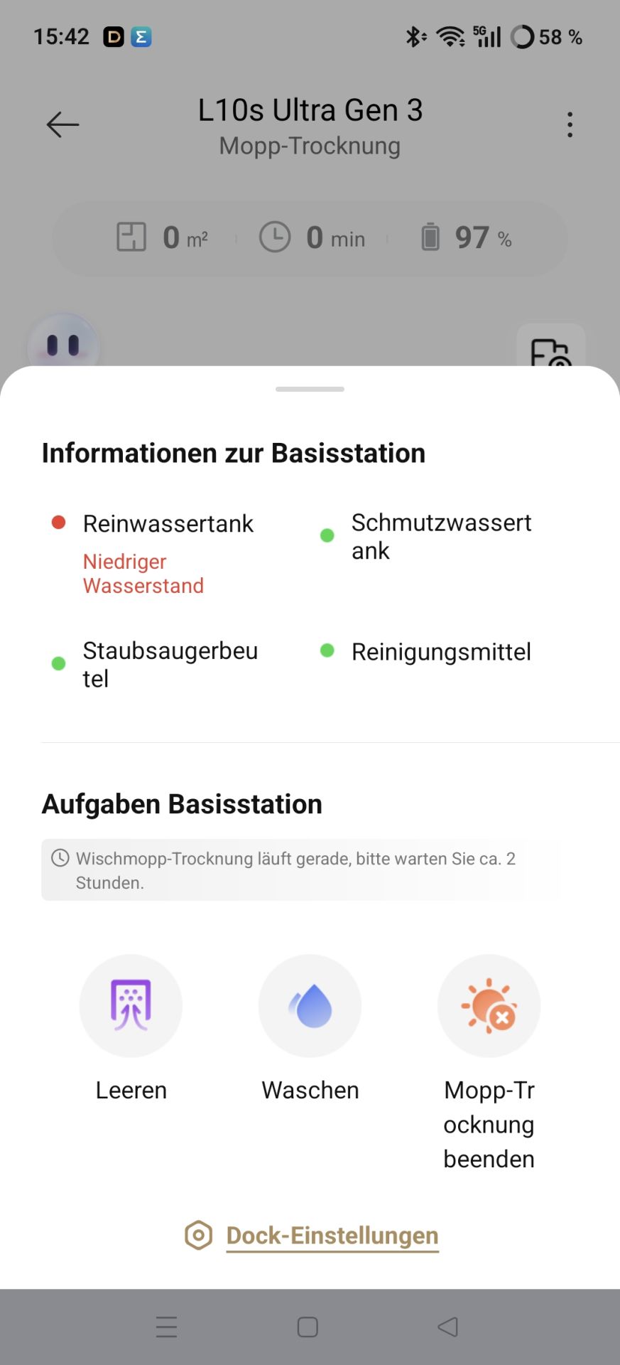 Ich musste die Karte neu laden, um den Roboter wieder auf die Servicestation zu bekommen. Danach habe ich die Füße vom Schreibtisch von 30mm auf 40mm hochgestellt und der Dreame L10s Ultra Gen3 hatte keine Probleme mehr damit.