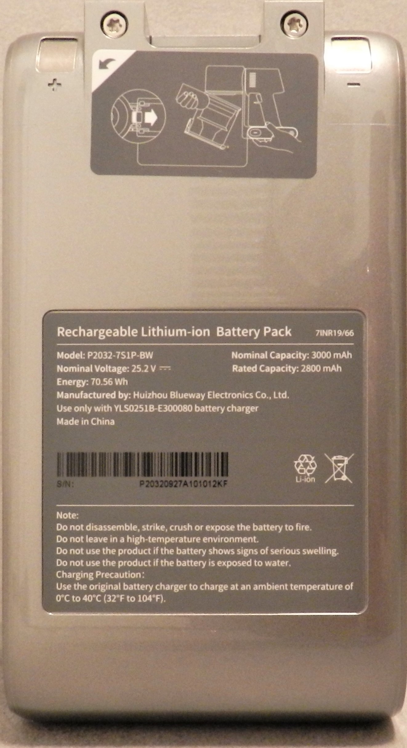 Der Dreame T20 besitzt einen 3.000 mAh großen Akku mit einer Nennleistung von 2.700 mAh.