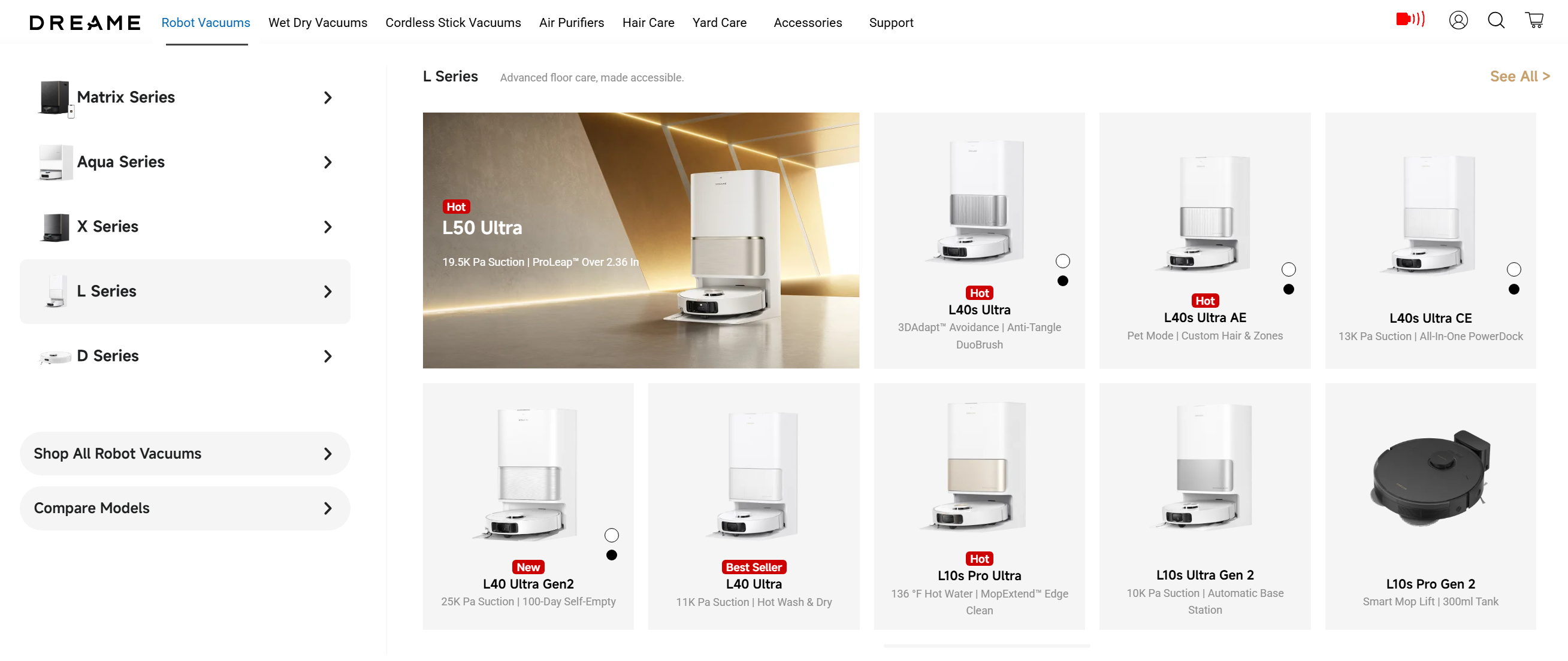 Dreames globale Expansionsstrategie sieht vor, dass sie sich hierzulande mit Branchengrößen wie Bosch, Miele und Siemens anlegen. Wenn ich mir unseren Markt mit der absurden Anzahl an Modellen und der Zerklüftung in verschiedene Bereiche anschaue, in denen alle die gleichen Geräte bauen, erinnert mich das an das Chaos, das unseren heimischen Autokonzernen aktuell das Genick bricht. Hier sieht Dreame wohl die Lücke für den Einstieg, um sich zu etablieren. Aber deutsche Kunden von einer Marke zu überzeugen, die bislang vor allem durch Saugroboter bekannt ist, dürfte schwierig bis aussichtslos sein. Wenn Dreame wirklich Spielgeld bereitgelegt hat, könnte der Versuch aber doch erfolgreich sein. Allerdings nutzt Dreame genau diese extreme Modellzerklüftung des Elektrogroßgerätegeschäfts auch im Saugroboterbereich.