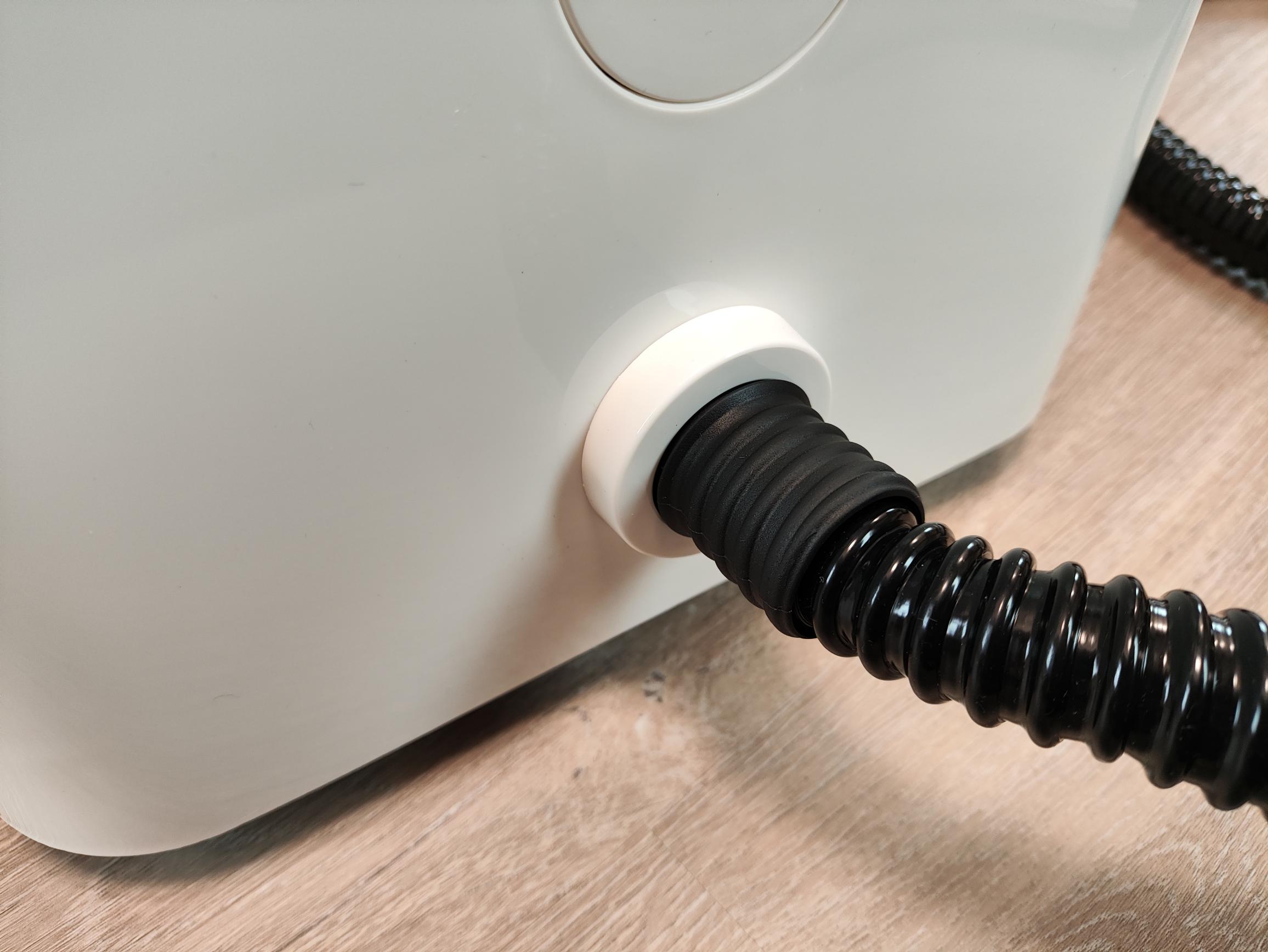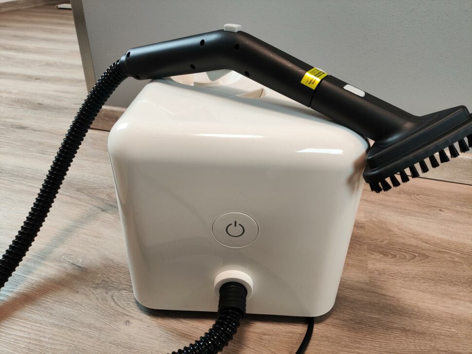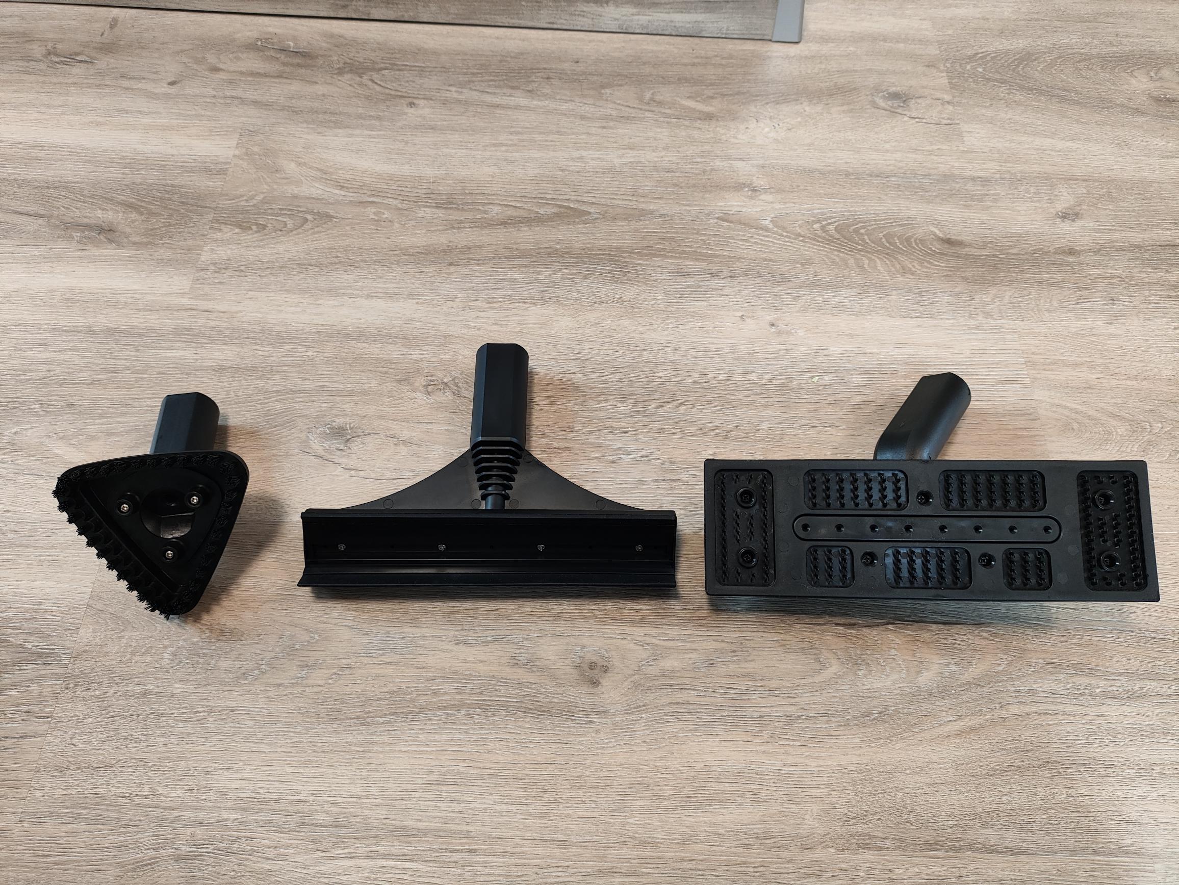 Die mitgelieferten Aufsätze wirken nicht besonders hochwertig. Die Bodendüse lässt sich lediglich nach links und rechts neigen, ist aber horizontal nicht verstellbar. Somit könnt ihr den Anstellwinkel bei der Bodenreinigung nicht verändern. Der Fensterreiniger-Aufsatz bietet keine Befestigungsmöglichkeit für ein Mikrofasertuch oder Ähnliches. Ihr bedampft die Scheibe lediglich und zieht sie im Anschluss mit der Gummilippe ab.