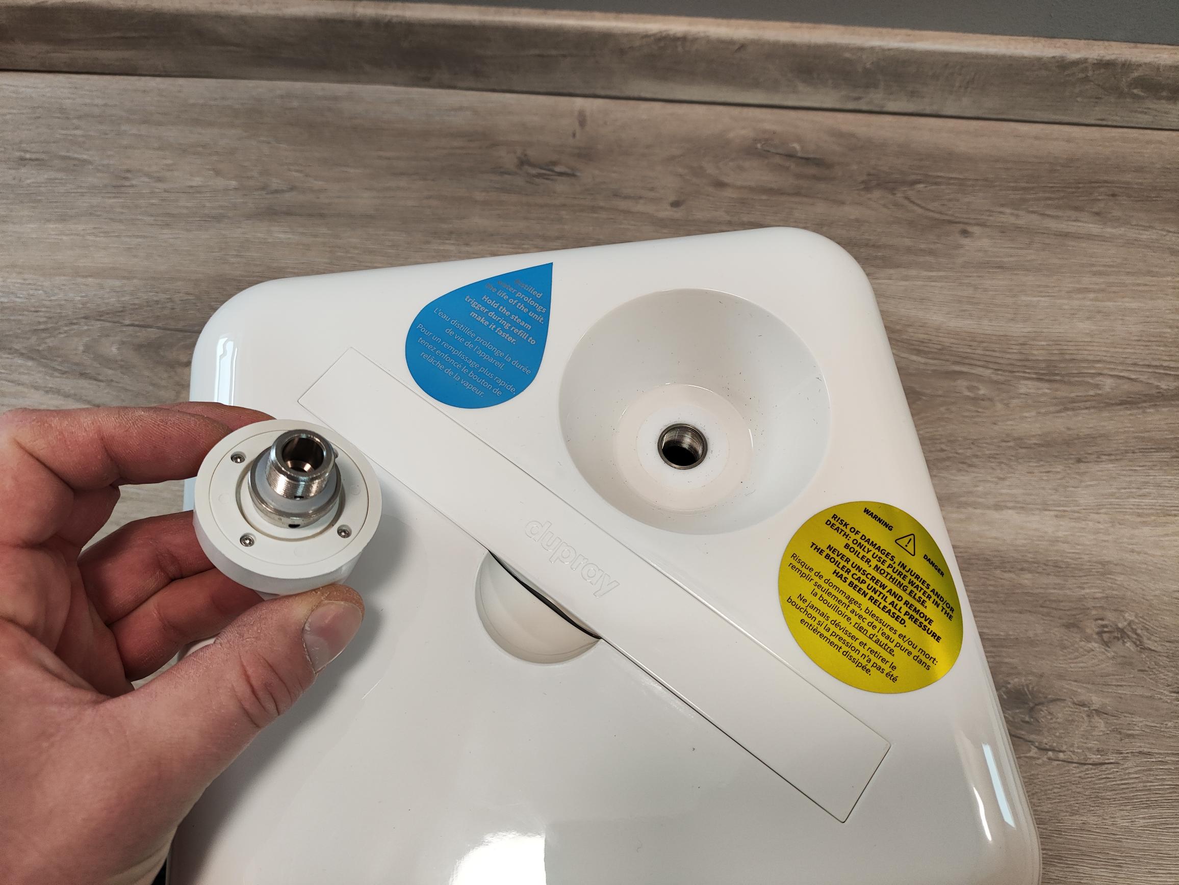 Bei größeren Reinigungsarbeiten kann es vorkommen, dass ihr den Wassertank während der Reinigung nachfüllen müsst. Hierbei müsst ihr beachten, dass der Behälter im Inneren des Gerätes unter Druck (heißer Dampf) steht. Um das Wasser nachzufüllen, müsst ihr das Gerät ausschalten, den Abzug so lange betätigen, bis kein Dampf mehr kommt, und im Anschluss 20 Minuten warten, bevor ihr den Deckel des Dampfdruckbehälters aufschraubt.