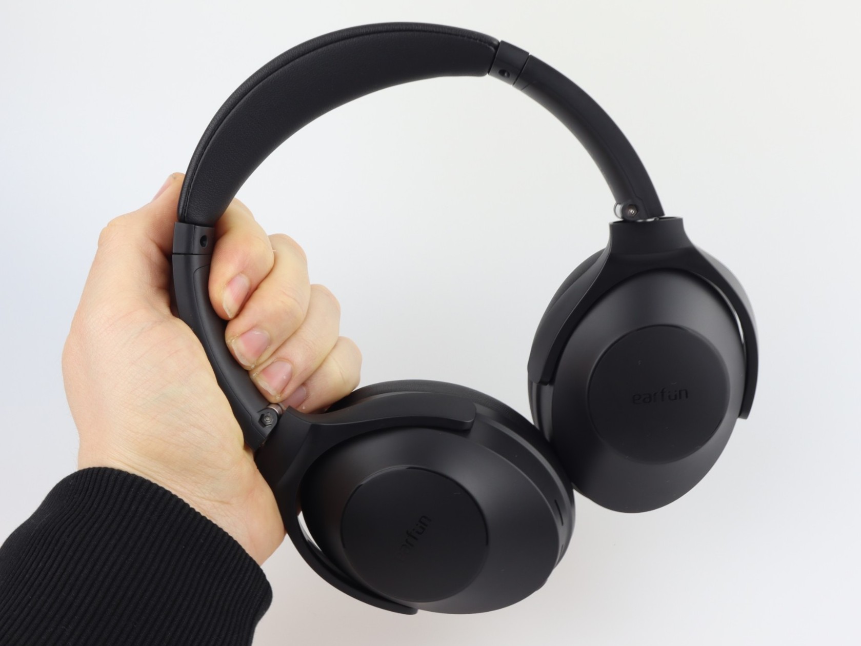 Die Verarbeitung der EarFun Wave Life ist insgesamt hochwertig. In der Hand und auf dem Kopf wirken sie nicht wie ein günstiges Modell. Beim Bedienen der Tasten zeigt sich jedoch, wo gespart wurde: Die Knöpfe sind fummelig, und der Modus-Button wird leicht versehentlich betätigt – was ungewollt zwischen ANC und Umgebungsmodus umschaltet.