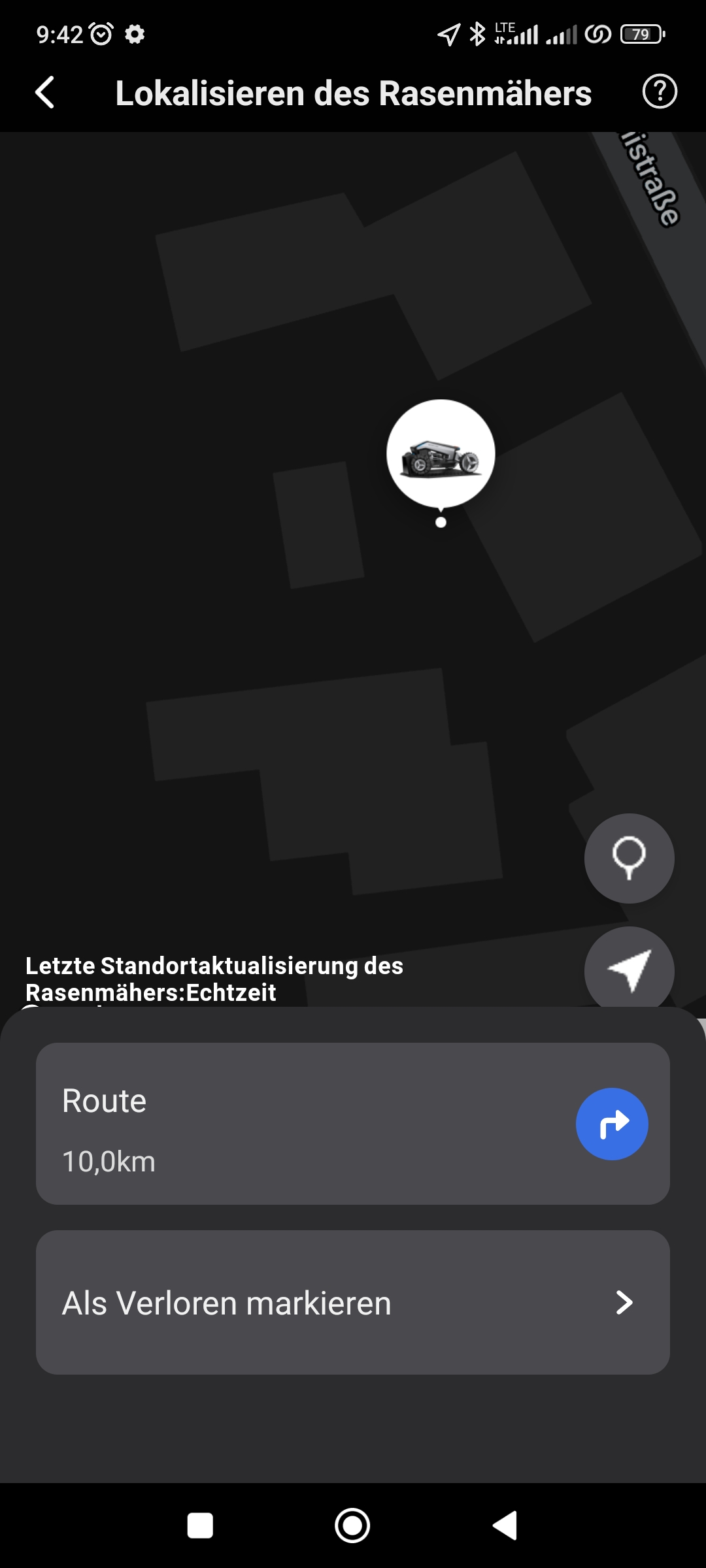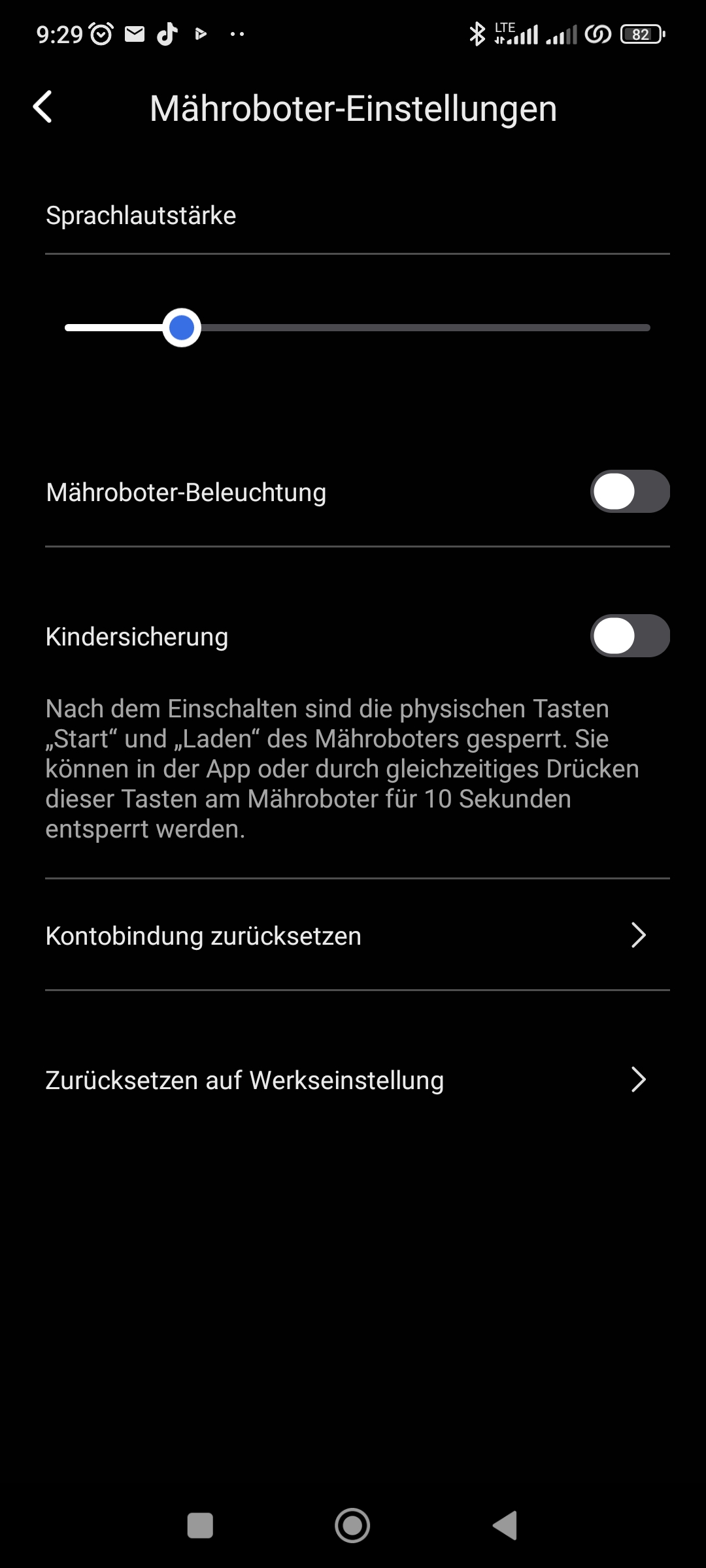 Da hilft nur eine manuelle Reinigung. Das ist sehr ärgerlich, wenn man gerade nicht zu Hause ist und der Mähauftrag deshalb nicht fortgesetzt werden kann. Alle Fehler, die während des Betriebs auftreten, müssen manuell mithilfe der zwei Taster auf der Rückseite zurückgesetzt werden. Wird der Roboter angehoben, kippt um, steht zu schräg oder hat verschmutze Sensoren, ist jedes Mal ein persönlicher Besuch notwendig. Das dient natürlich auch der Sicherheit.