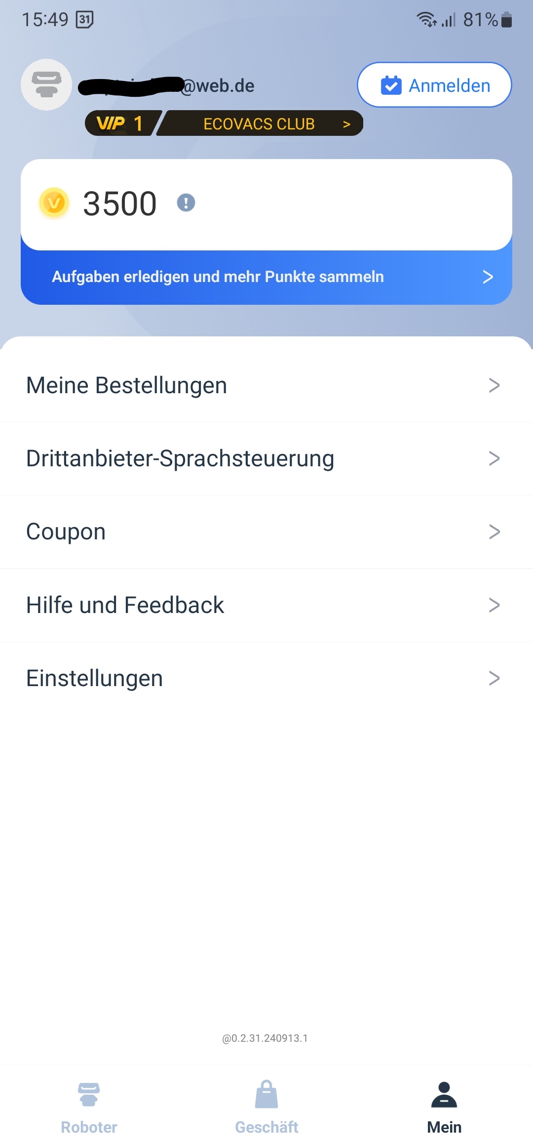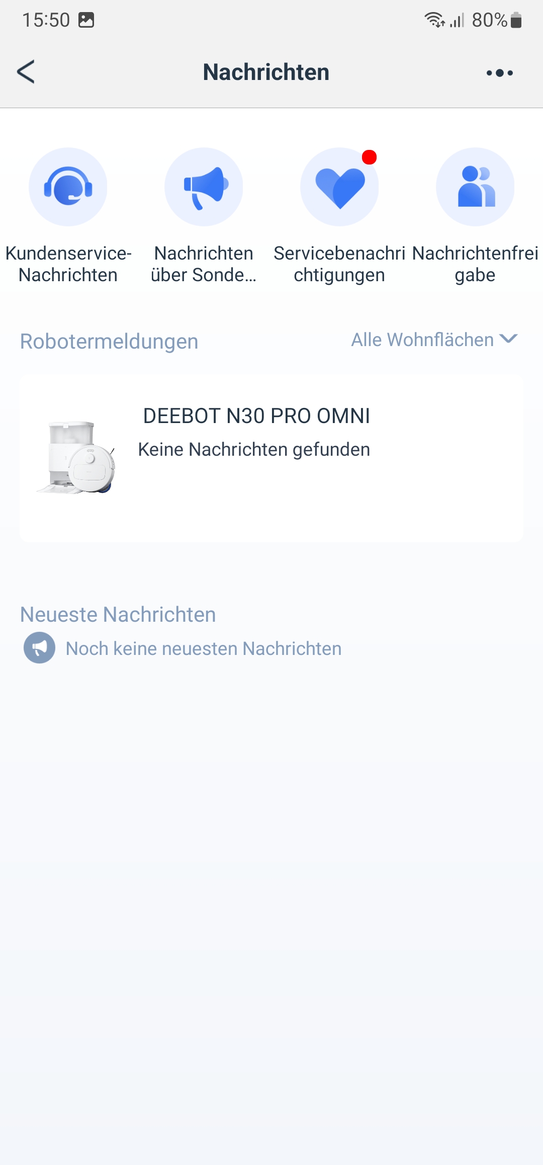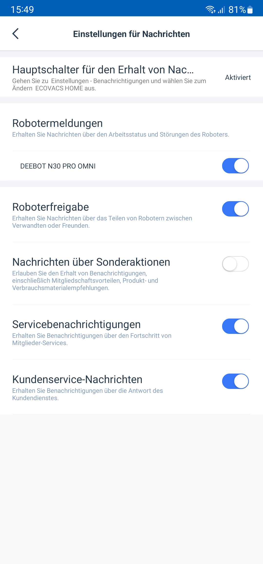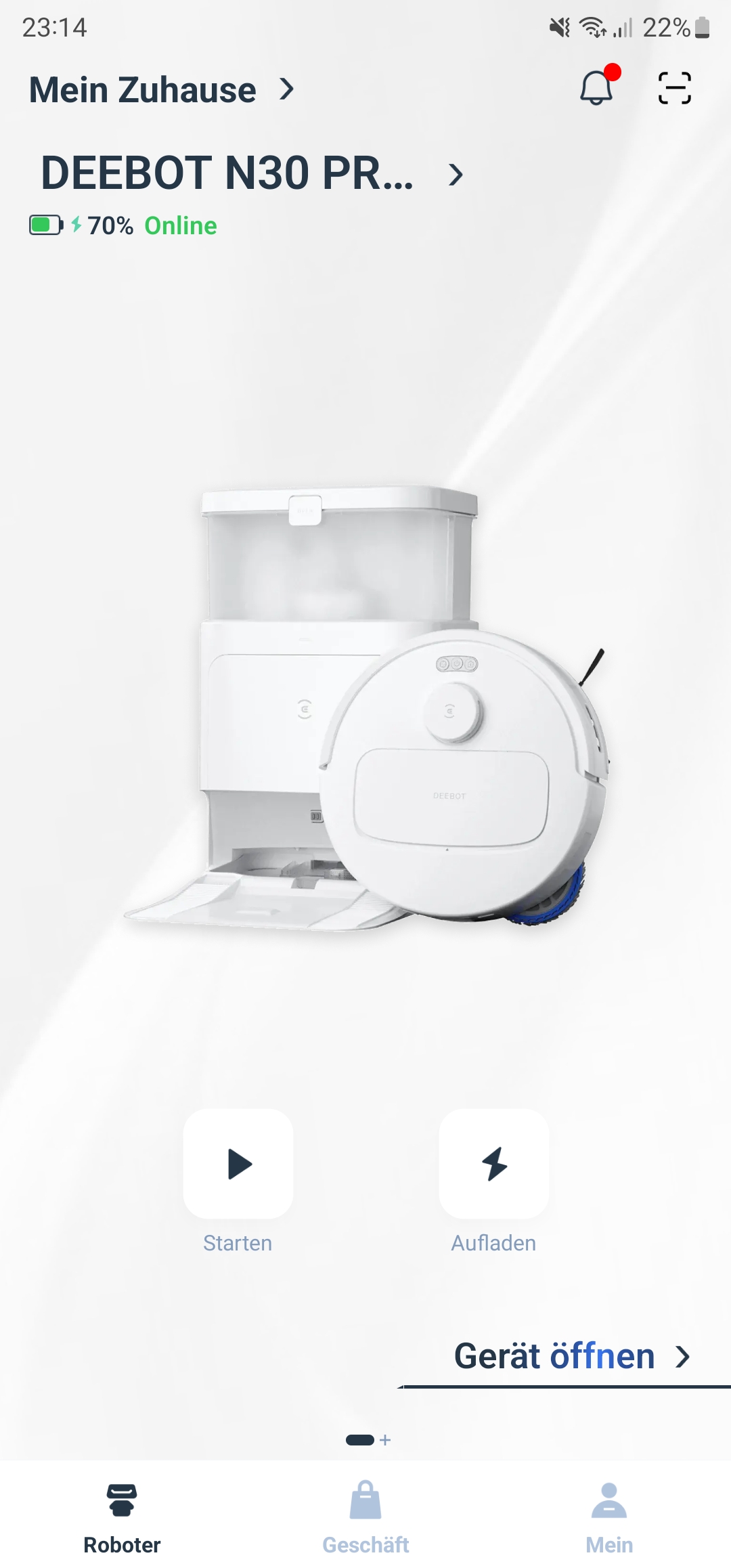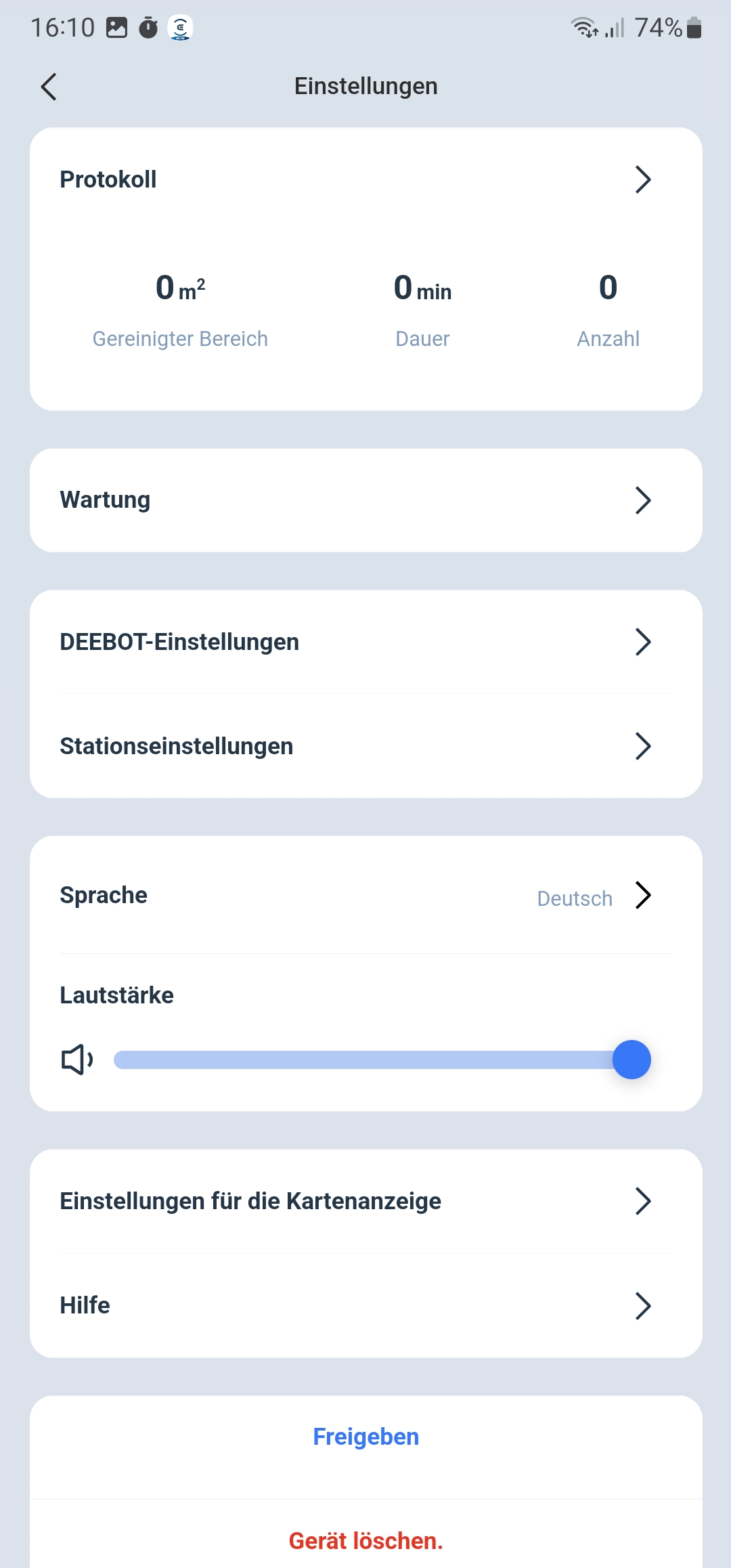 Für die Bedienung des Saugroboters ist die hauseigene App Ecovacs Home obligatorisch. Die App überzeugt durch ein ansprechendes Design, einen funktionalen Aufbau sowie eine fehlerfreie Übersetzung ins Deutsche. Zudem können Verschleißteile direkt aus der App heraus nachbestellt werden. Mögliche Abstürze traten im gesamten Testzeitraum kein einziges Mal auf. Über mögliche Firmware-Updates für den Saugroboter wird man informiert und diese werden per OTA (Over-the-Air) per Funk auf das Gerät aufgespielt. Ist ein neues Update erschienen, kann man das Gerät erst wieder in Betrieb nehmen, wenn man es aktualisiert hat. Im Testzeitraum von knapp 4 Wochen wurden zwei Firmware-Updates zur Verfügung gestellt.
