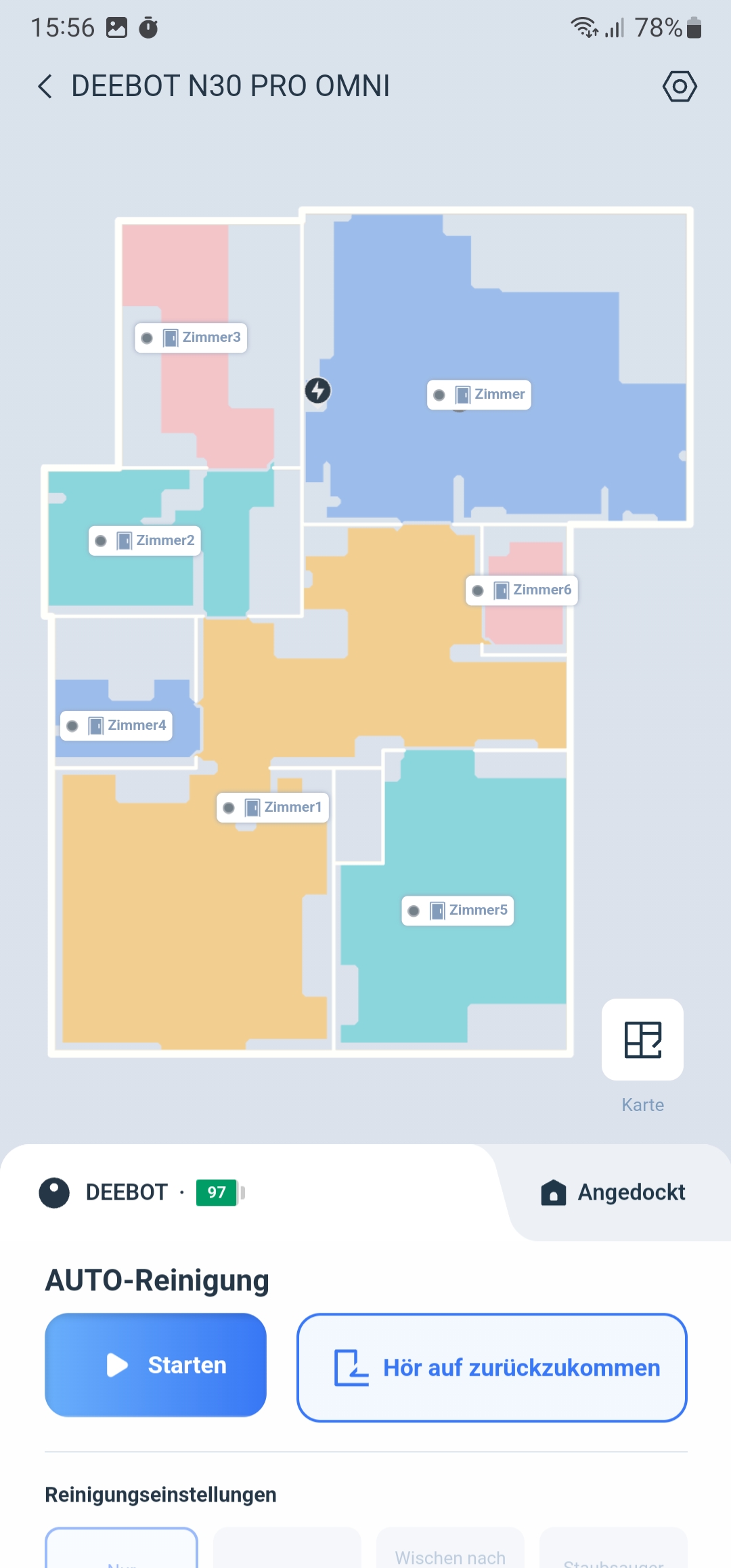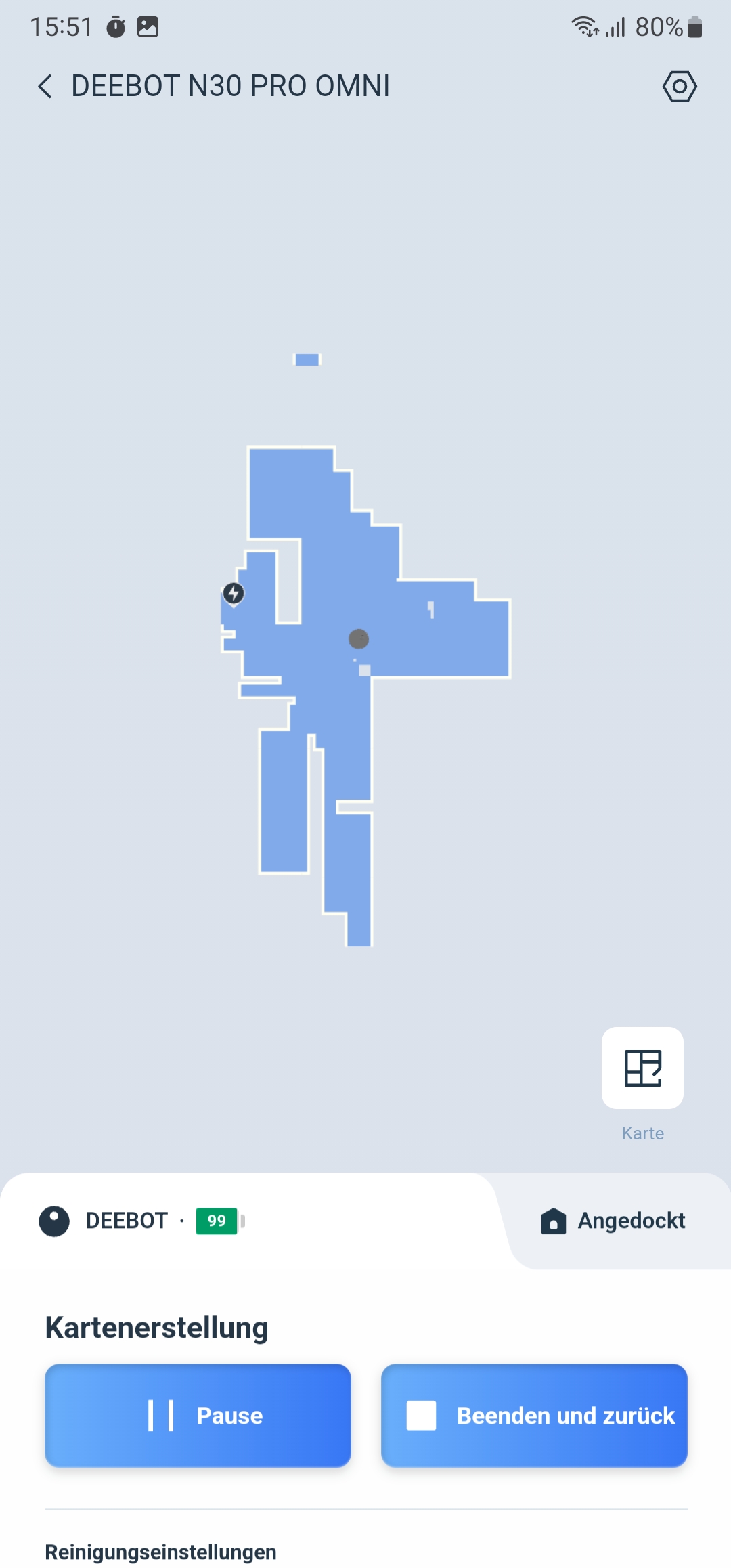 Da ich in meinem Tech-Leben schon so einige Saugroboter testen durfte, hege ich einen gewissen Graus bei jeden neuen Objekt der Begierde. Jeder Staubsauger, der über eine richtige Navigation verfügt, muss die Wohnung einmal komplett kartografieren. Das bedeutet auch, dass die Wohnung entsprechend vorbereitet werden muss (Stühle hochstellen, Kinderzimmer zumindest etwas aufräumen usw.). Glücklicherweise bieten die meisten modernen Staubsauger, wie auch der Deebot N30 Pro, eine Schnellkartierung an. Dabei wird die Wohnung nicht gereinigt und die Räume nur rudimentär befahren.