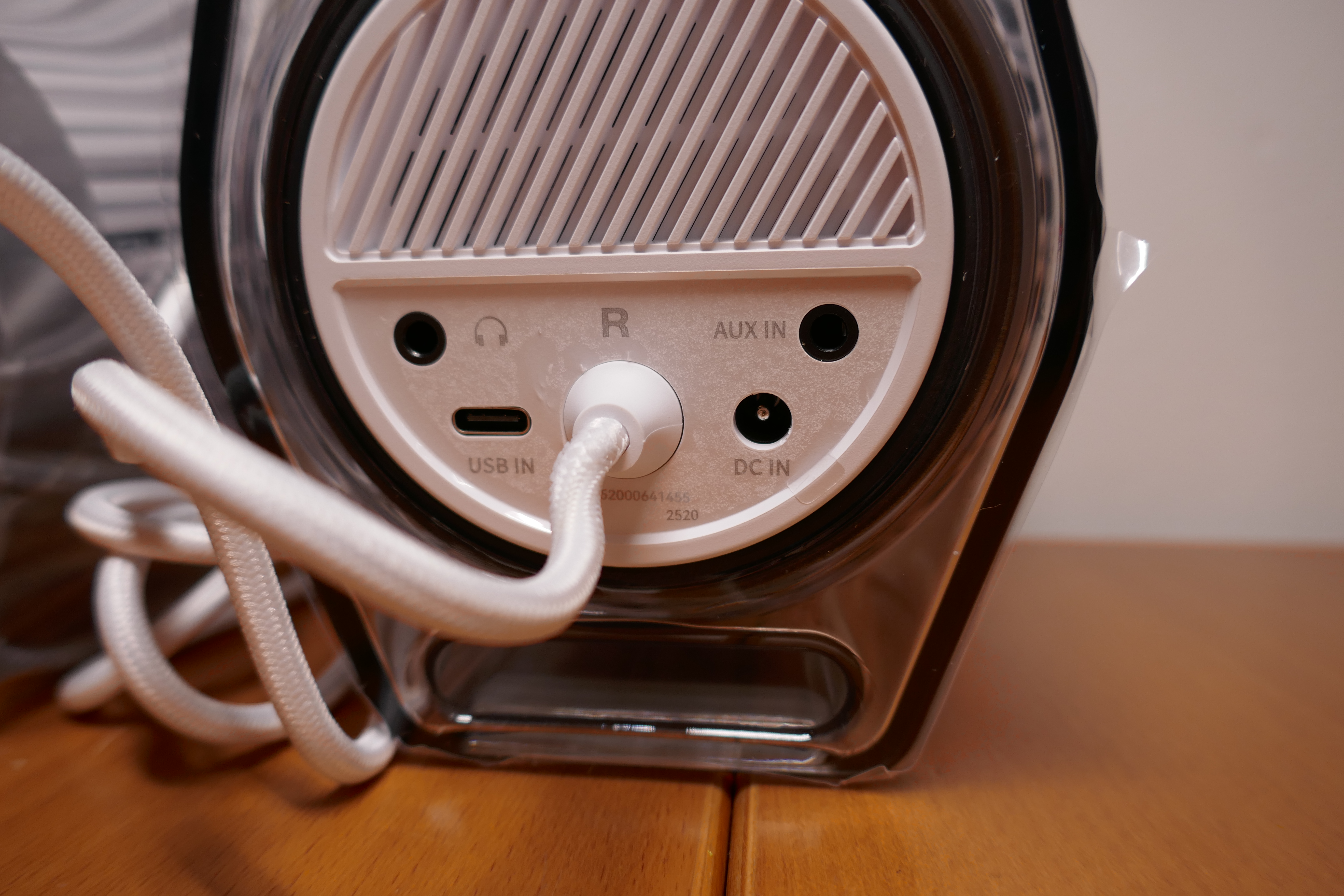 Trotz transparenter Optik bieten die Lautsprecher drei verschiedene Anschlussarten: USB-C oder 3,5mm Klinke für die Verbindung zu einem PC und Bluetooth 5.4, wenn es nur die Musikwiedergabe per Smartphone sein soll. Das Verbindungskabel zwischen den beiden Lautsprechern ist fest integriert und somit nicht abnehmbar. Mehr Freiheiten habt ihr beim Stromkabel, das abnehmbar bleibt. Als aktives Lautsprecherpaar besitzen die G2000 Pro einen integrierten Verstärker, das Netzteil wurde zugunsten des Gewichts jedoch ausgelagert.
