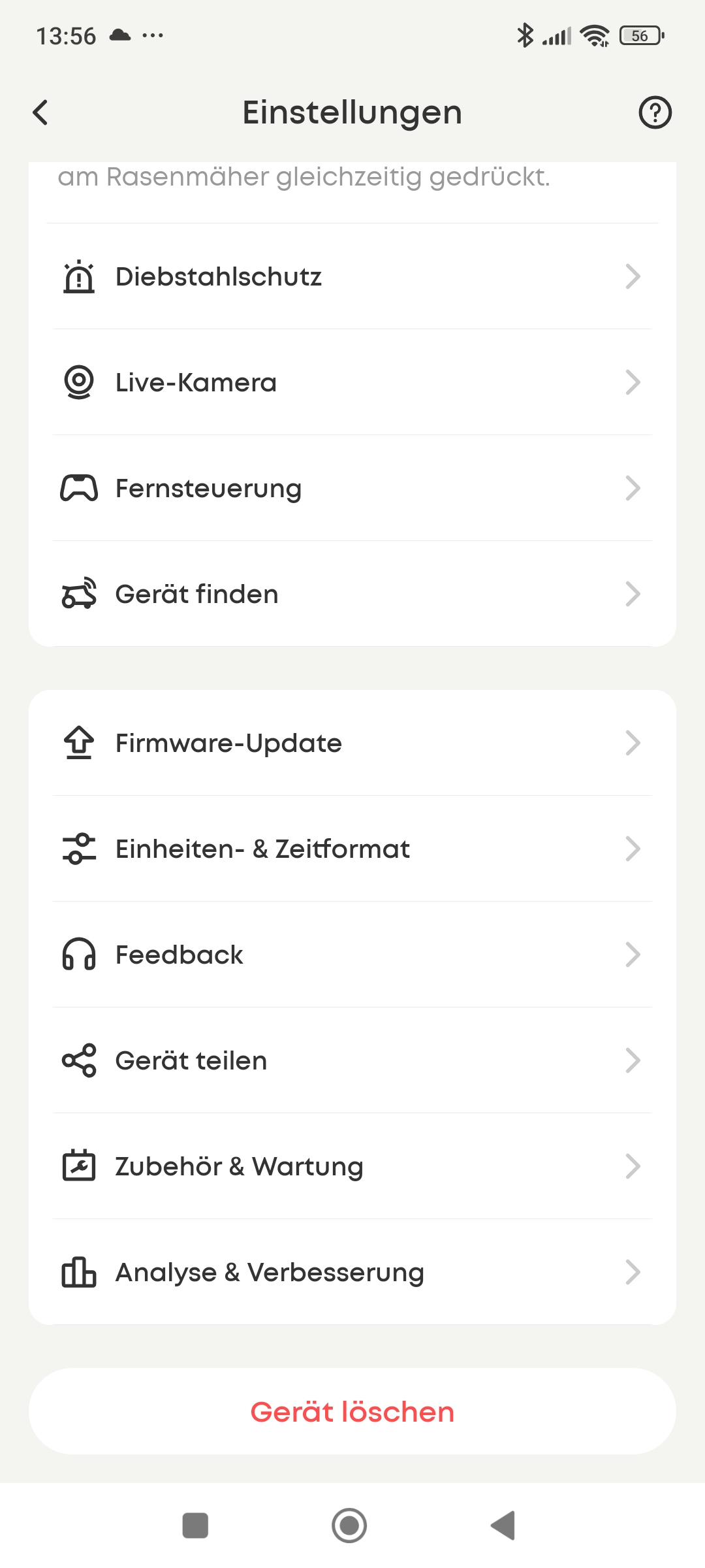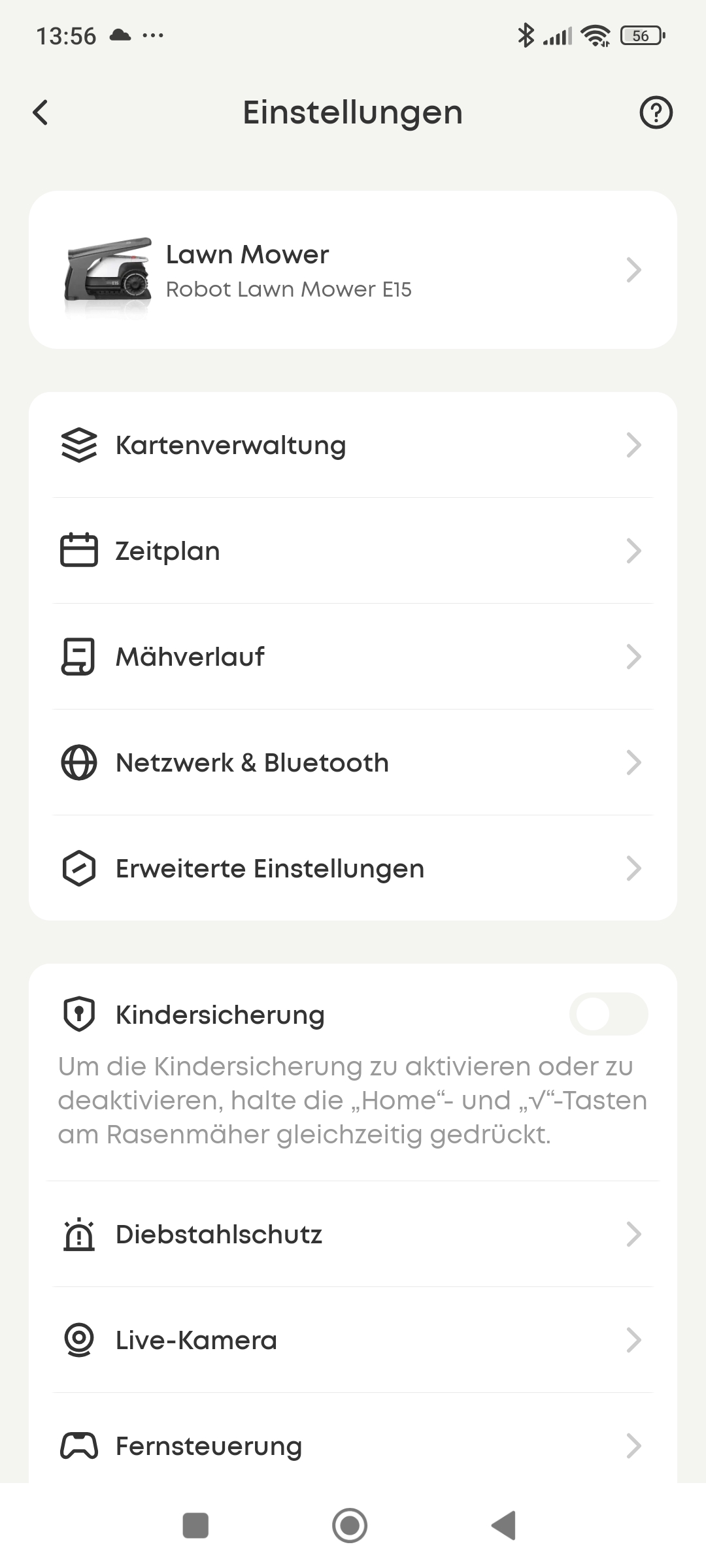 - Zeitplan (automatisches, zeitgesteuertes Mähen)