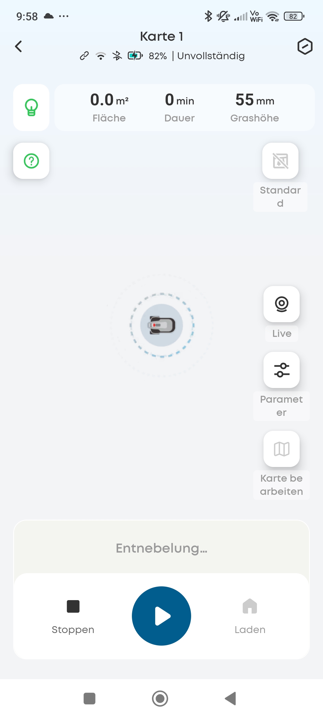Die Live-Kamera in Verbindung mit der Fernsteuerung ermöglicht es, das Mähergebnis hautnah mitzuerleben. Sollte sich der Roboter doch einmal festfahren, kann dieser mittels der manuellen Steuerung von überall aus gesteuert werden. Hier ist erstmals keine Sicht- oder Bluetooth-Verbindung notwendig. Dies ist ein nicht zu unterschätzender Vorteil auf Wochenendgrundstücken oder Bereichen, wo der Nutzer nicht ständig vor Ort eingreifen kann. In diesem Modus lässt sich allerdings lediglich navigieren. Das Mähwerk arbeitet nur im automatischen Betrieb.
