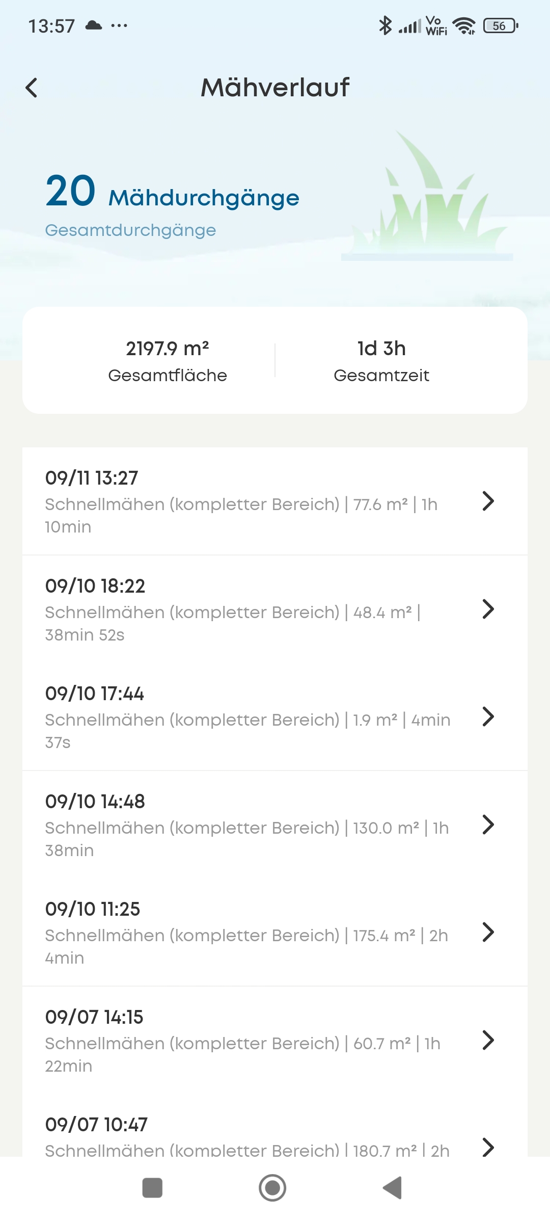 Im gesamten Testzeitraum gab es keinerlei Probleme. Die eingestellten Mähzeiträume wurden zuverlässig eingehalten, Hindernisse wurden stets umfahren und die Gesamtfläche zuverlässig gemäht. Selbst das Spielhaus der Kinder mit Rutsche, Treppe und Schaukeln wurde problemlos durchquert, das bei bisherigen Tests teilweise als Sperrzone deklariert werden musste. Trotz des anspruchsvollen Geländes hat sich der Eufy E15 zu keiner Zeit festgefahren oder musste manuell geborgen werden.