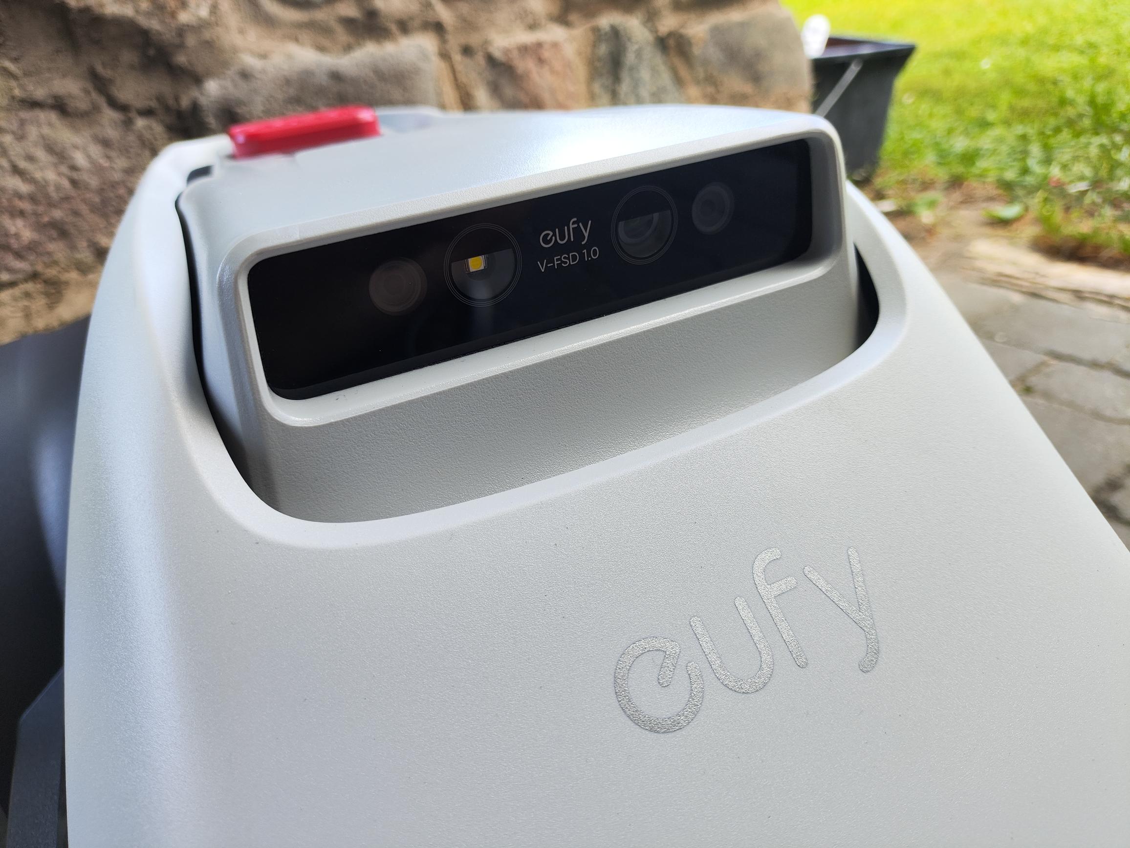 Der hohe Aufbau bietet zudem Vorteile in Bezug auf die Kamerapositionierung. Aufgrund der hohen Positionierung wird die Übersicht über das Gelände verbessert und die Verschmutzung der Sensorik wirkungsvoll verhindert. Insgesamt verbaut Eufy drei Kameras, die durch ein LED-Licht ergänzt werden, das sich bei schlechten Lichtverhältnissen automatisch einschaltet. Trotz der Tatsache, dass es sich bei dem Eufy E15 um den ersten Mähroboter im Produktsortiment handelt, hat man sich viele Gedanken über die grundsätzliche Konstruktion gemacht. Selbst die Ladekontakte werden tief im Mähroboter eingelassen und sind durch das Gehäuse vor Feuchtigkeit geschützt.