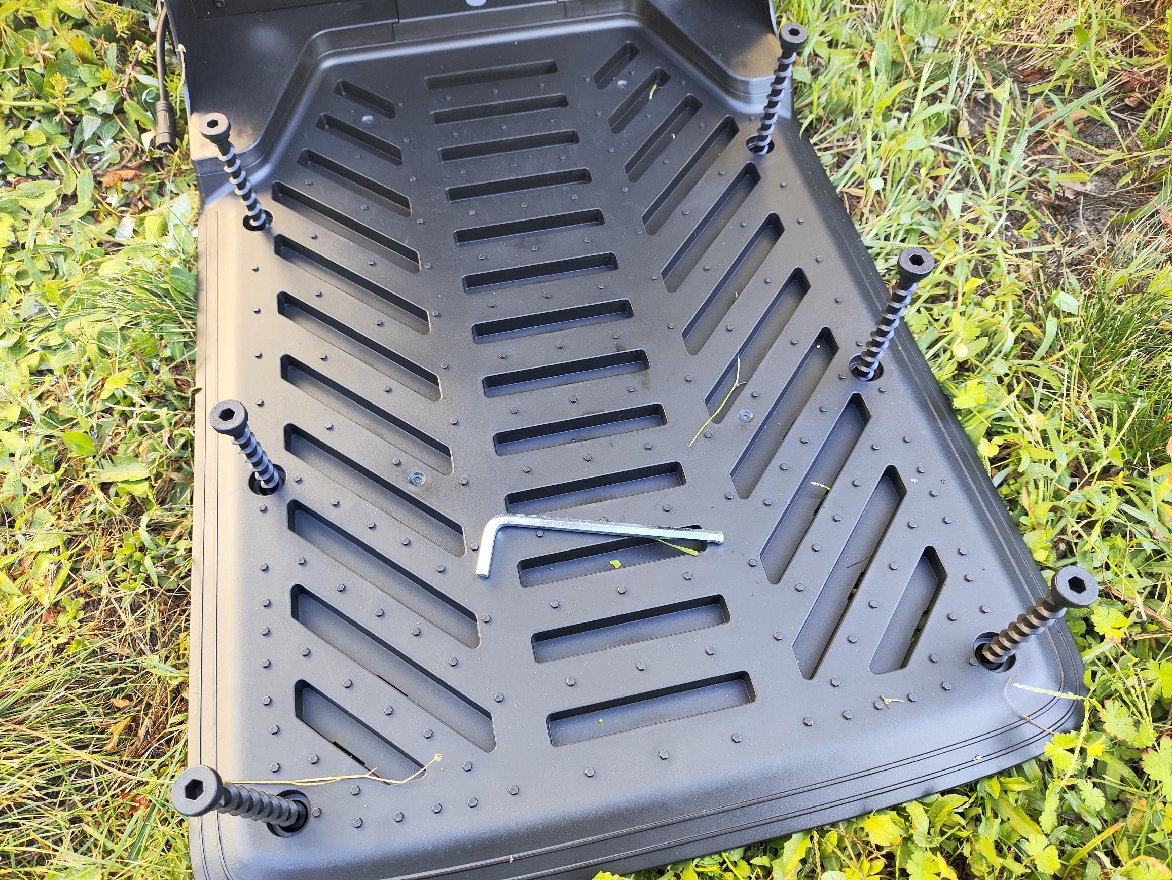 Ist ein passender Standort gefunden, wird die Ladestation mittels der Bodenschrauben verankert, das Garagendach mithilfe von zwei Schrauben fixiert und das 10m lange Ladekabel bis zu einer freien Steckdose geführt. Im Anschluss sollte der Roboter einmal vollständig geladen werden.