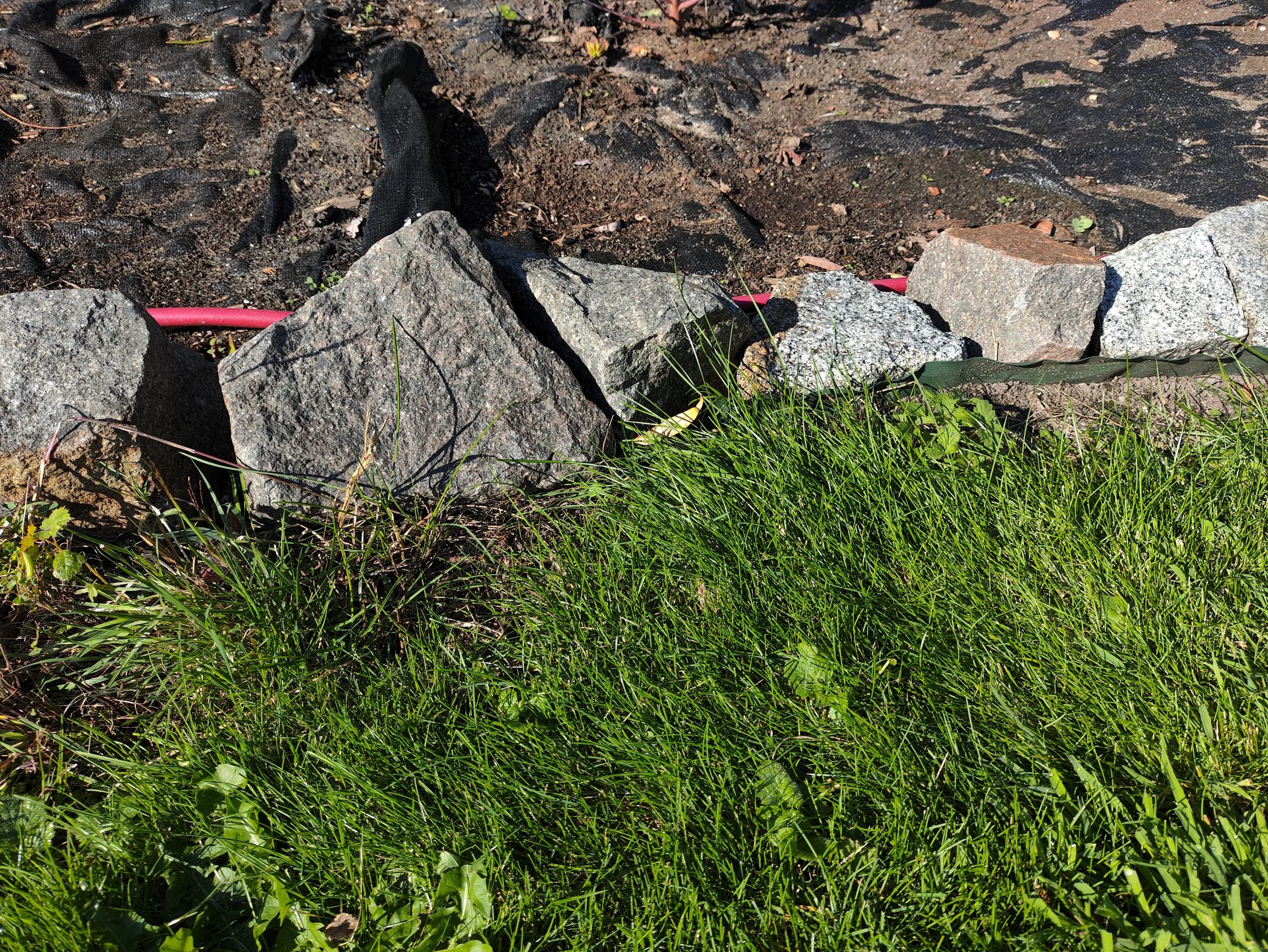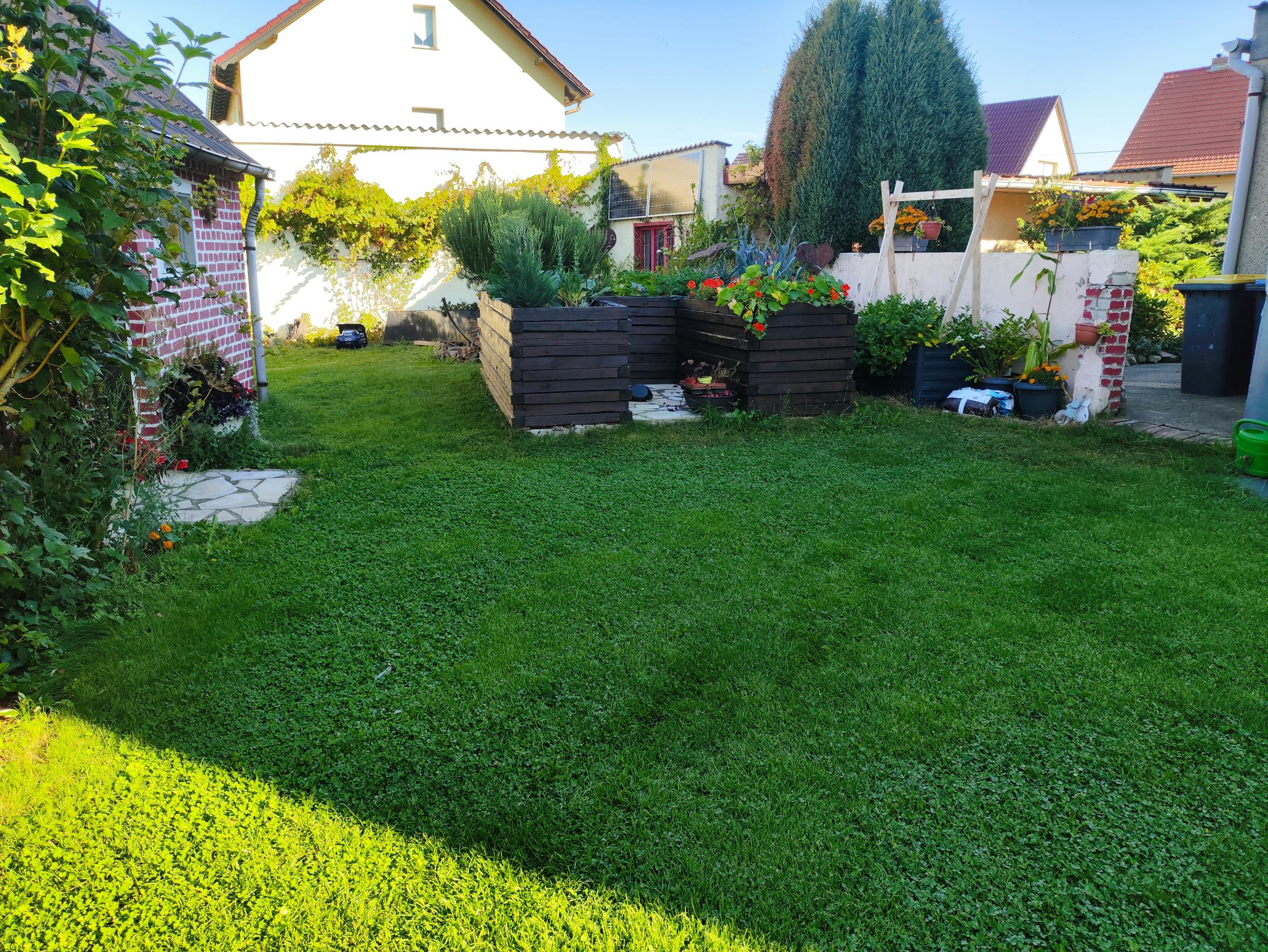 Die Begrenzungen des Grundstücks sind sehr vielfältig. Während Blumenbeete mit Granitsteinen eingefasst sind, werden andere Bereiche durch Mauern oder eine einfache Betonplatte begrenzt. Auch ein Hochbeet aus Holz befindet sich mitten in der zu mähenden Fläche. Bisher wurde das Grundstück sehr erfolgreich vom Dreame A2 (zum Test) bearbeitet, der nun durch den Eufy E15 abgelöst wird.