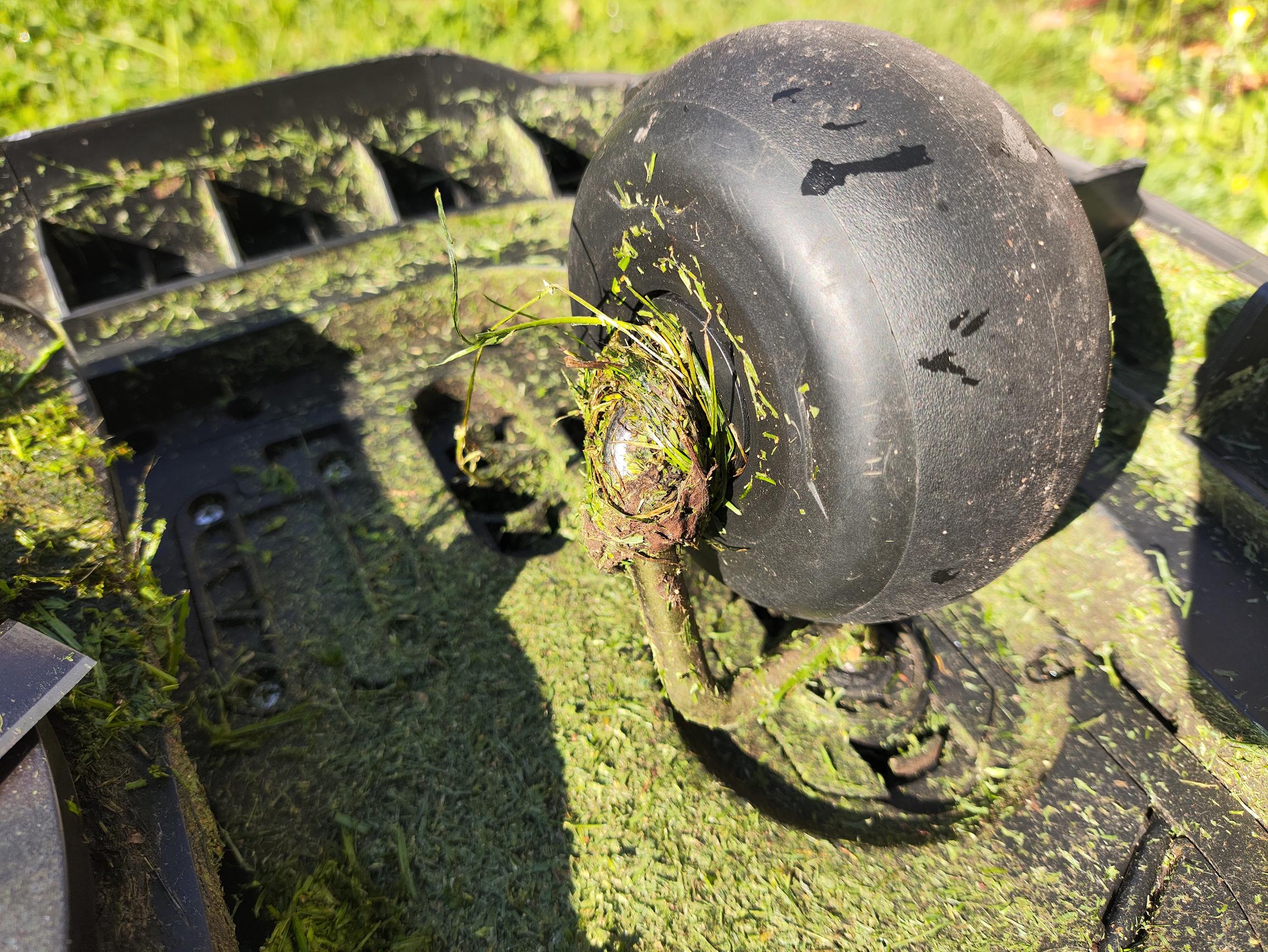 Nach rund 200 Betriebsstunden haben wir den Eufy E15 das erste Mal gründlich gereinigt. Aufgrund der feuchten Witterung verfängt sich der Grasschnitt entsprechend stark auf dem Unterboden und am Mähteller. Die Klingen waren trotz der Grasreste noch komplett frei beweglich. Ein kurzes Abspülen mit dem Gartenschlauch und das Entfernen von Grasresten am Vorderrad nehmen rund 5 Minuten Zeit in Anspruch. Eine Reinigung mit einem Hochdruckreiniger wird vom Hersteller ausdrücklich untersagt. Grobe Verschmutzungen können mit einer weichen Bürste entfernt werden. Im Anschluss sollte das Lager des Vorderrades nachgefettet und die Kameraoptik mit dem mitgelieferten Mikrofasertuch gereinigt werden. Die komplette Reinigung nimmt rund 10 Minuten Zeit in Anspruch. Die Qualität der Klingen ist ausgesprochen gut. Diese waren nach 200 Betriebsstunden noch vergleichsweise scharf und können entsprechend weiterverwendet werden.