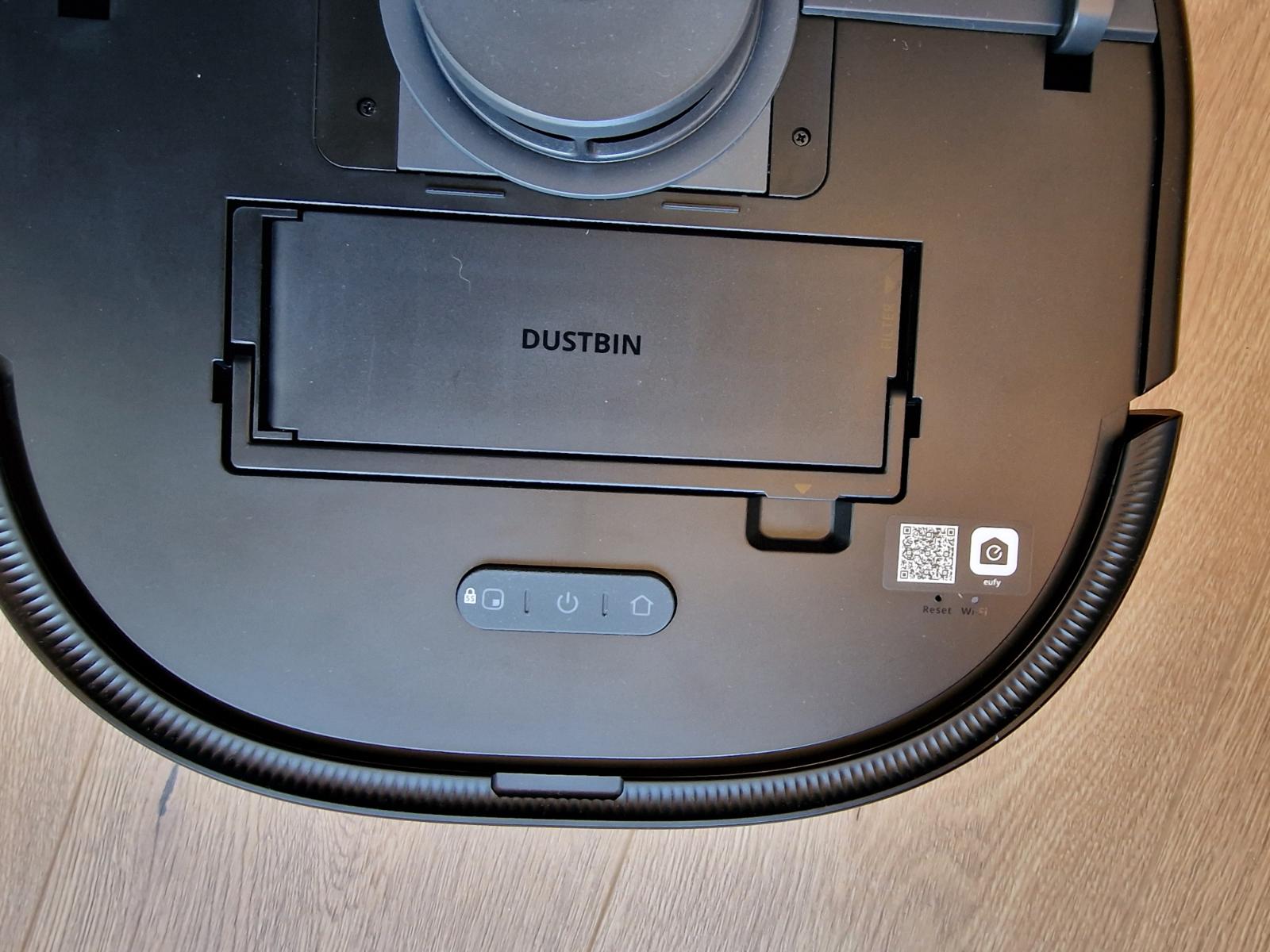 Auf der Oberseite befindet sich neben dem Laserturm noch eine großzügige Wartungsklappe, die einen manuellen Zugriff auf den Filter ermöglicht. Durch die Servicestation muss dieser eigentlich nicht gereinigt werden. Aber im Fall der Fälle erlaubt der Hersteller einen einfachen Zugriff und Austausch des Filters und auch die Reinigung geht einfach vonstatten. Der eufy X10 Pro Omni hat eine Filtererkennung und startet nicht ohne Filter. Zudem sind auf der Oberseite drei Taster für eine manuelle Bedienung verbaut, falls man die App gerade nicht zu Hand hat oder nicht mit Google oder Alexa gekoppelt hat.