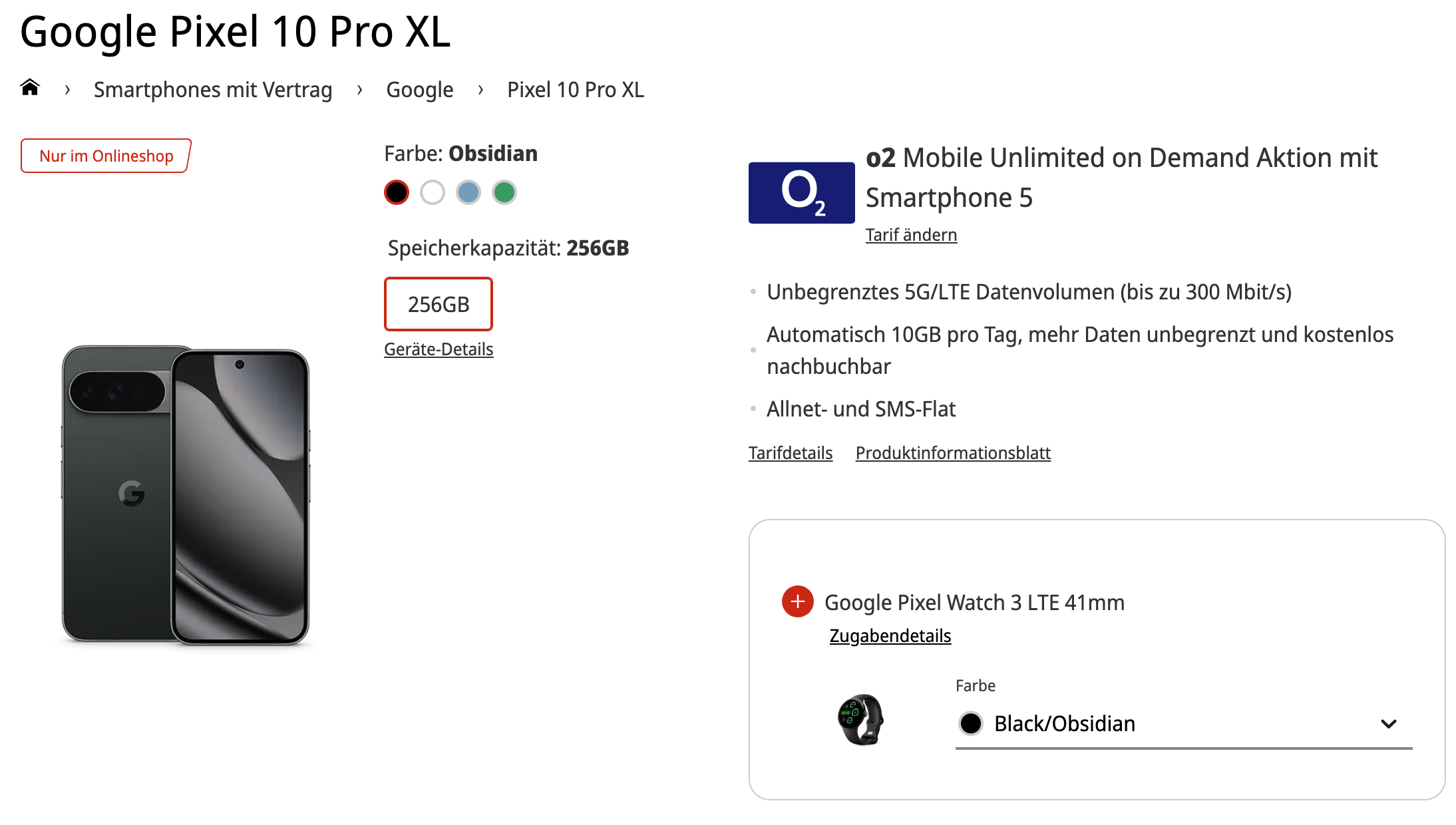 Google Pixel 10 Pro XL & Pixel Watch 3 LTE mit Unlimited zum Bestpreis