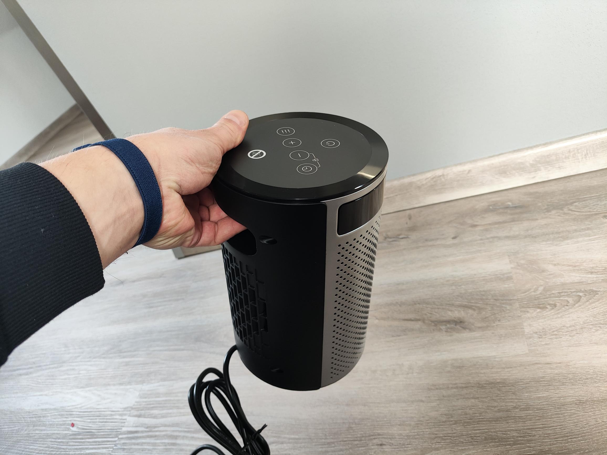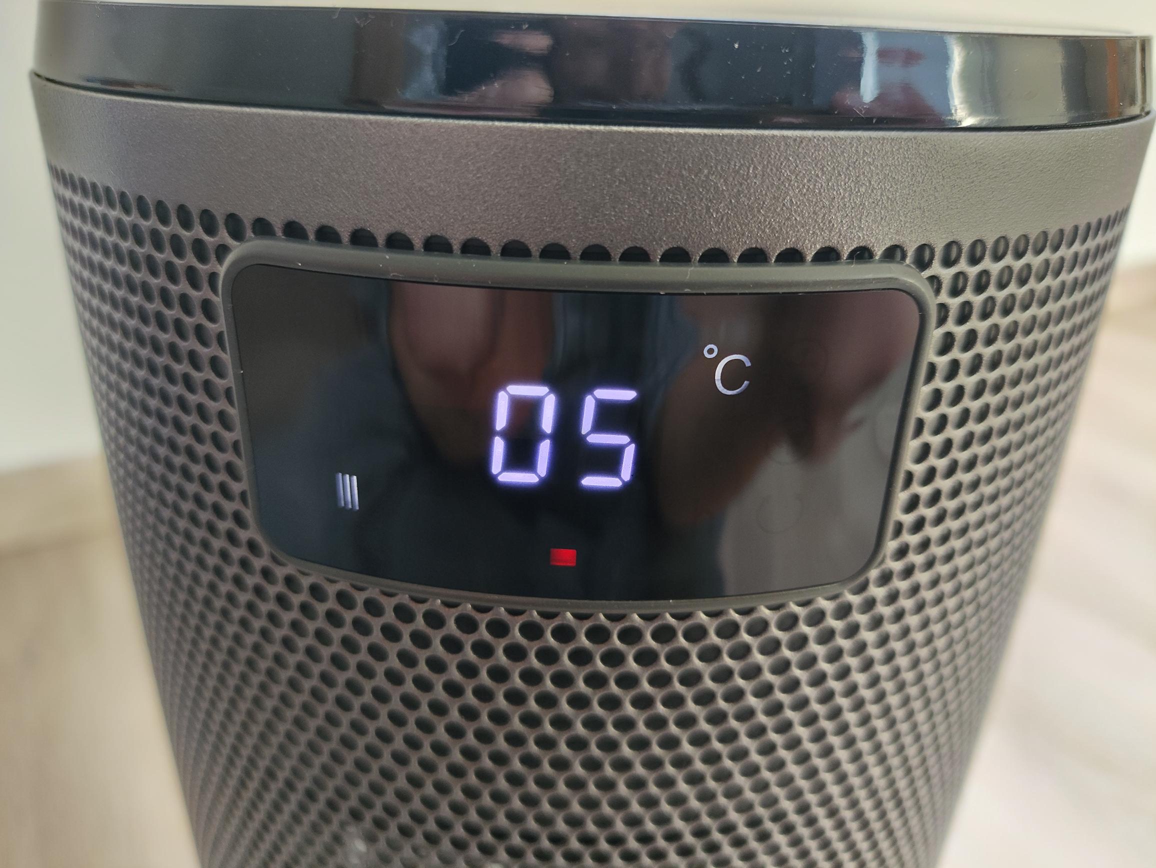 Der Heizlüfter verfügt als einziges Modell im Test über eine Speicherfunktion für das Abschalten. Das bedeutet, dass die letzte Heizeinstellung selbst nach Ziehen des Netzsteckers beim nächsten Starten erhalten bleibt. Somit müsst ihr die Zieltemperatur oder den Heizmodus nicht jedes Mal neu einstellen. Wie auch die beiden Konkurrenzmodelle kann im Thermostatmodus die Zieltemperatur im Bereich von 5–35°C eingestellt werden. Bedauerlicherweise arbeitet das Thermostat alles andere als genau. Um die Zieltemperatur von 20°C zu erreichen, mussten wir 26°C auf dem Gerät auswählen. Der einstellbare Timer ermöglicht ein automatisches Abschalten im Bereich von 1–24 Stunden.