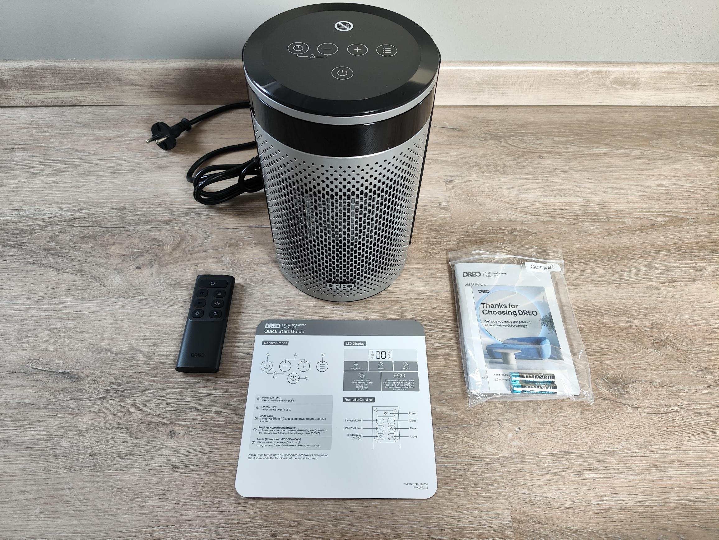 Neben den eigentlichen Heizlüftern befindet sich bei allen drei Modellen die passende Bedienungsanleitung im Karton. Die Modelle von Dreo und Omniheat könnt ihr mit der beiliegenden Infrarot-Fernbedienung auch aus der Ferne steuern. Passende Batterien lagen bei beiden Modellen dem Lieferumfang bei.