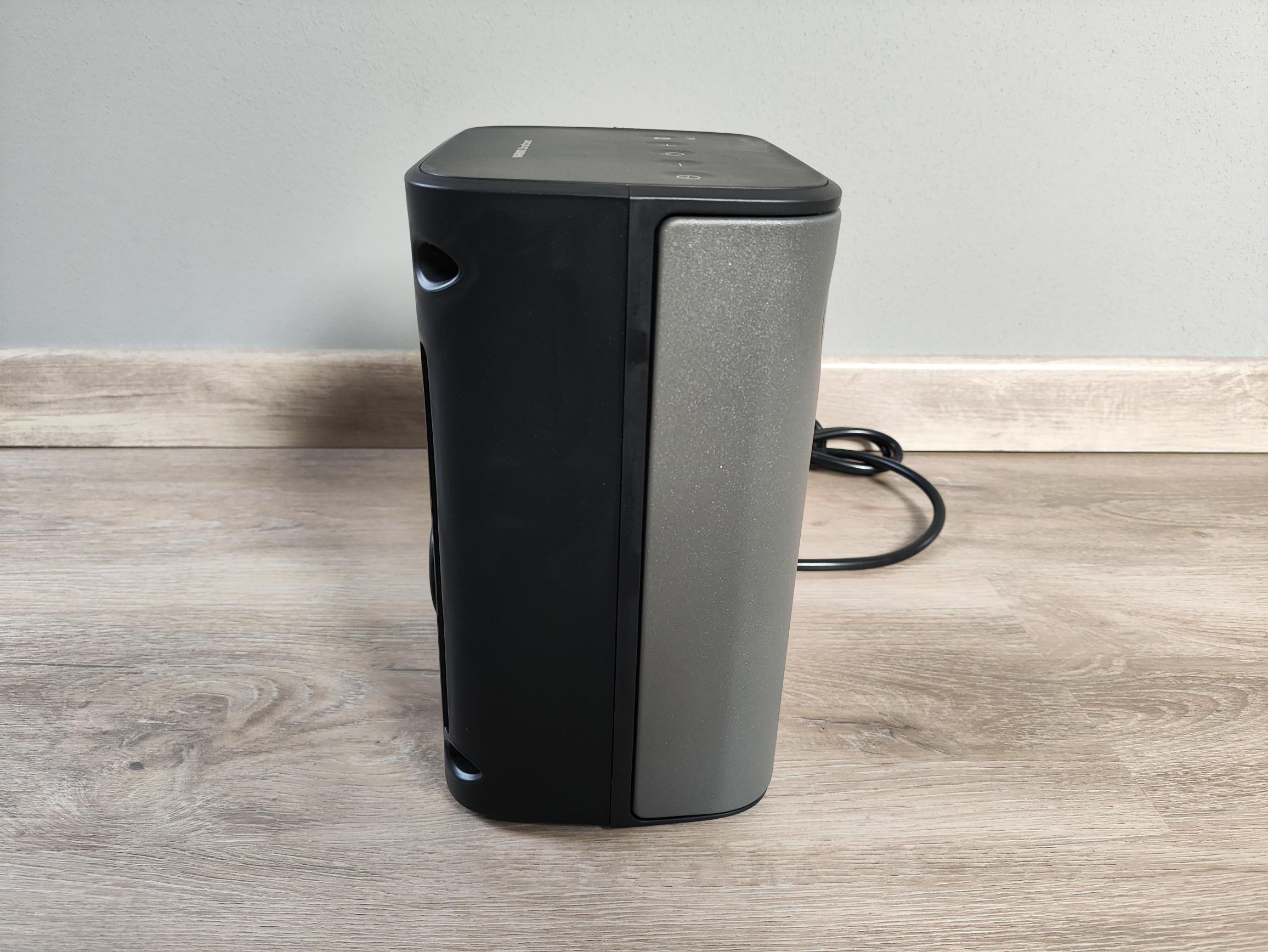 Das Thermostat des Dreo Heizlüfters arbeitet vergleichsweise genau. Um eine Raumtemperatur von 20°C zu erreichen, mussten wir die Einstellung auf rund 22°C anheben. Alle Einstellungen lassen sich zudem über die Fernbedienung steuern. Der integrierte Tragegriff auf der Rückseite ermöglicht es, den Heizlüfter auch im laufenden Betrieb umzusetzen. Ein besonderes Highlight dieses Heizlüfters ist die Lautstärke. Je nach Leistungsstufe (1.500/1.400/1.050W) werden lediglich 50/47/45dB(A) in einem Abstand von einem Meter erreicht. Zudem ist das Lüftergeräusch sehr angenehm und erinnert an das Rauschen einer Dusche.